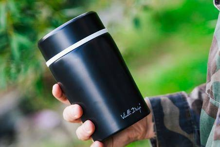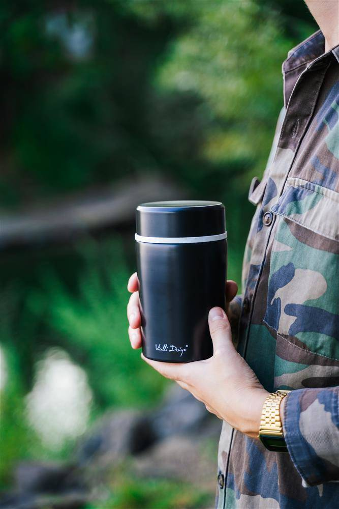 Termos obiadowy Vialli Design z serii Fuori ma pojemność 500 ml i oferuje stalową izolację próżniową – gwarantuje to zachowanie odpowiedniej temperatury przez długi czas. W przypadku gorących produktów będzie to 12 godzin, a w przypadku schłodzonych – aż 16 godzin. Bardzo dużym atutem jest to, że zewnętrzna ścianka nie nagrzewa się ani nie skrapla. Dobrze przemyślany kształt produktu, który idealnie dopasuje się do każdej dłoni, to kolejny aspekt świadczący o niezwykłej funkcjonalności. Kompaktowy rozmiar i niewielka waga sprawiają, że transport termosu nie będzie żadnym problemem – możemy z łatwością zabrać go na przykład do pracy.