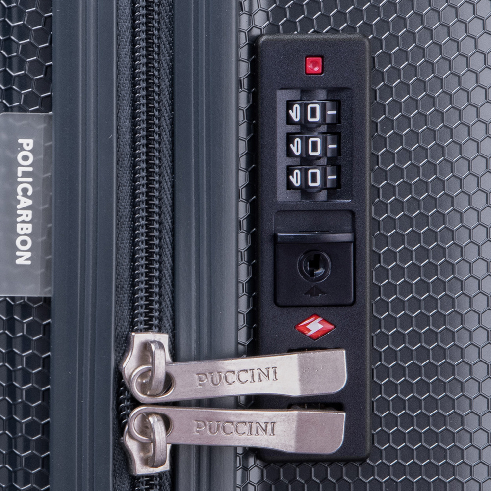 - dodatkowo wyposażona w wbudowany do wnętrza walizki zamek szyfrowy TSA (Travel Security Agency, bardzo przydatny w podróżach do USA),