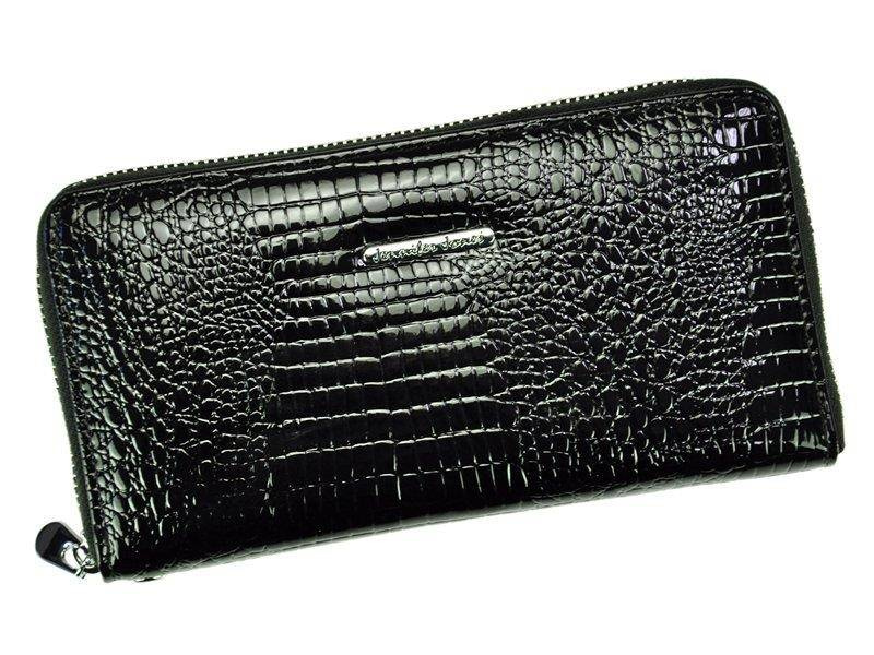 Portfel to nie tylko piękno i jakość wykonania, ale również funkcjonalność. Długość 19.5 cm, wysokość 10 cm oraz szerokość 2.5 cm sprawiają, że jest to produkt o dużej pojemności, a zarazem idealnie mieszczący się w damskiej torebce. Kieszeń na monety, zapinana na zamek, zabezpiecza drobne przed wydostaniem się, a solidny sposób zamykania całego portfela to pewność, że zawartość pozostanie na swoim miejscu. Model ten nie posiada funkcji RFID Secure, jednak jego solidna konstrukcja i wysoka jakość materiałów gwarantują zadowolenie z użytkowania.