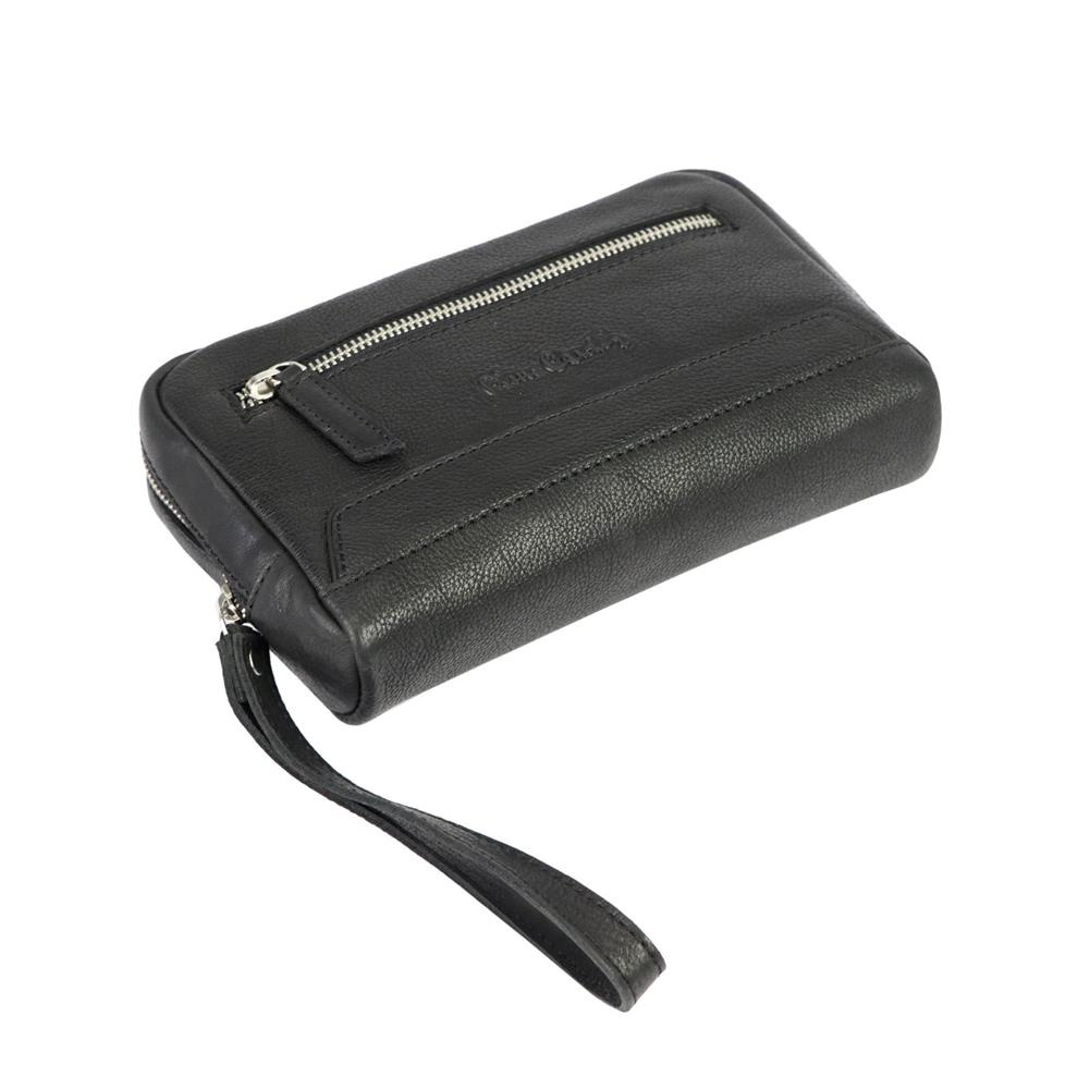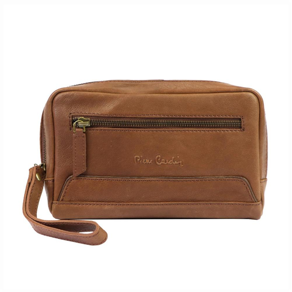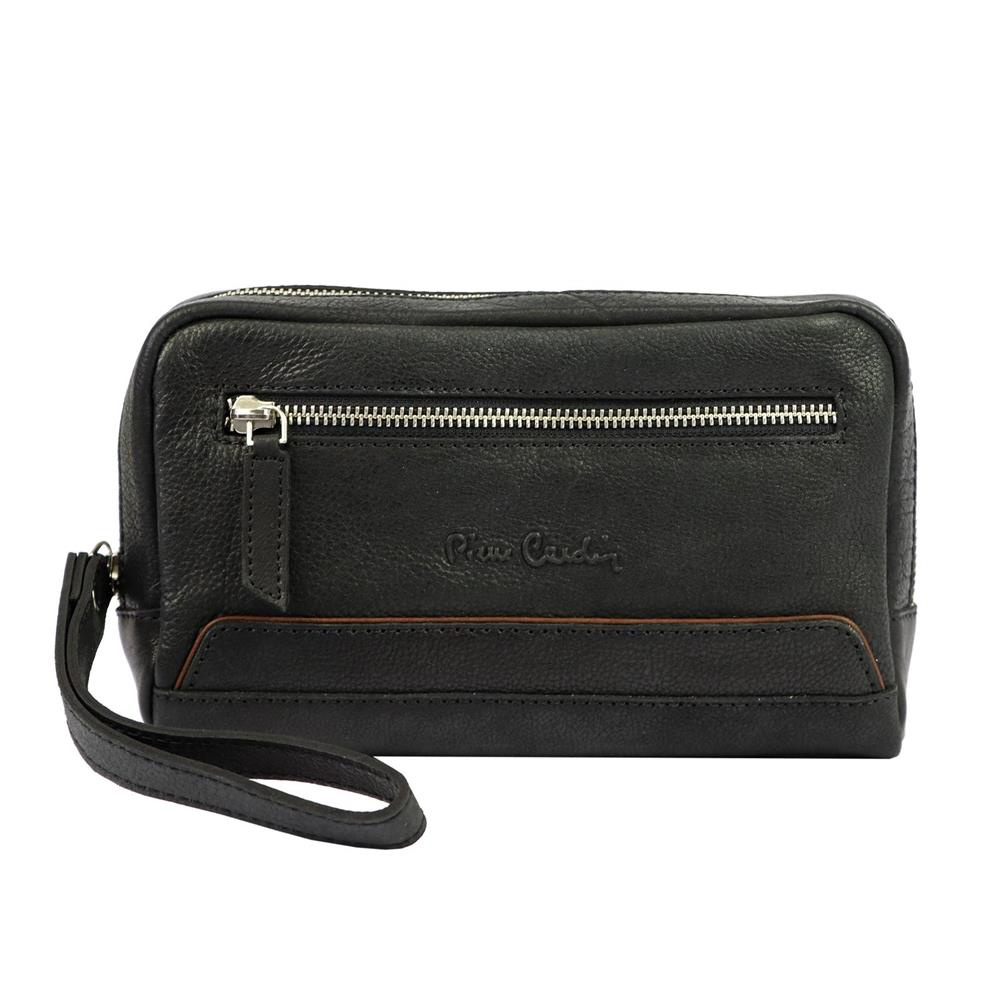 Zgrabna męska saszetka do noszenia w ręku. Wyposażona w dwie kieszenie zapinane na zamek błyskawiczny. Na fakturze znajduje się wytłoczone logo producenta Pierre Cardin. Wykonanie z wysokogatunkowej skóry naturalnej.