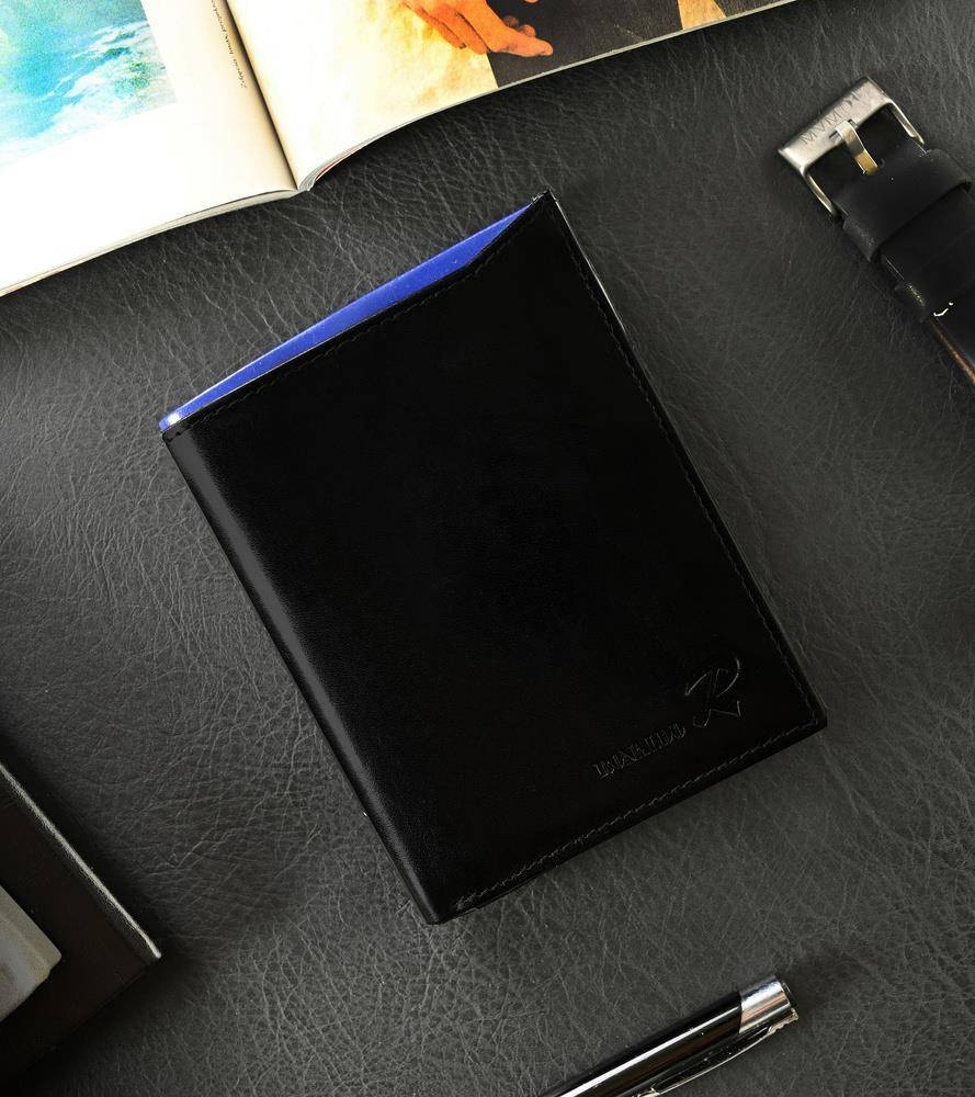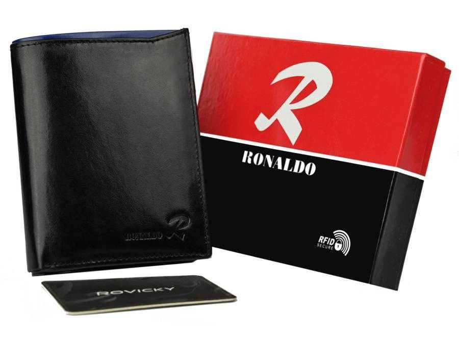 Składany, pionowy portfel męski z połyskującej skóry naturalnej — Ronaldo