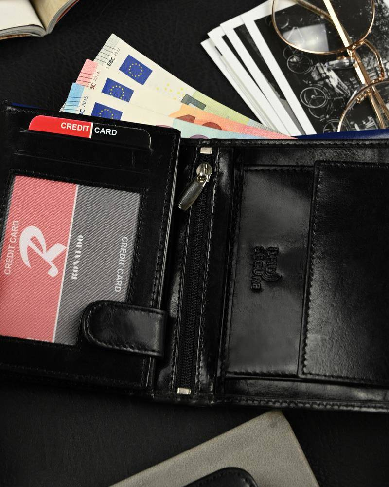 Podwójna kieszeń na banknoty jest przydatna dla Mężczyzny, który korzysta z dwóch walut.
