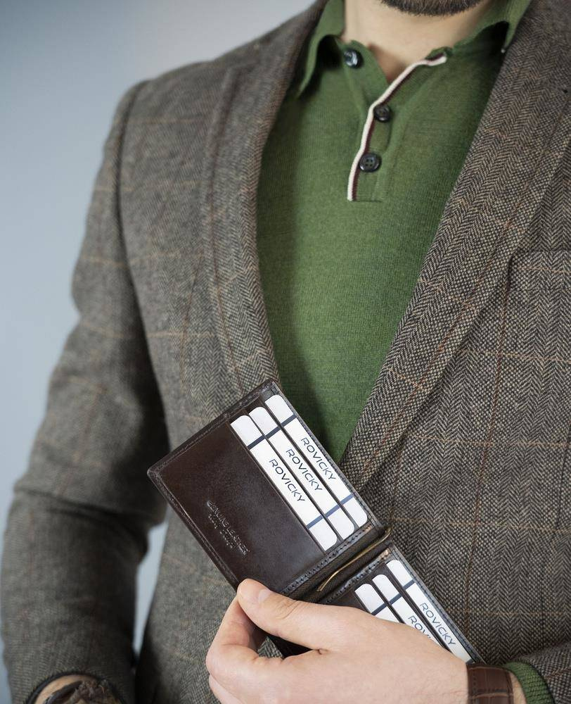 Skórzana banknotówka z zakładkami na karty — Rovicky