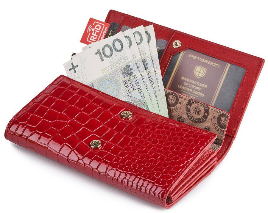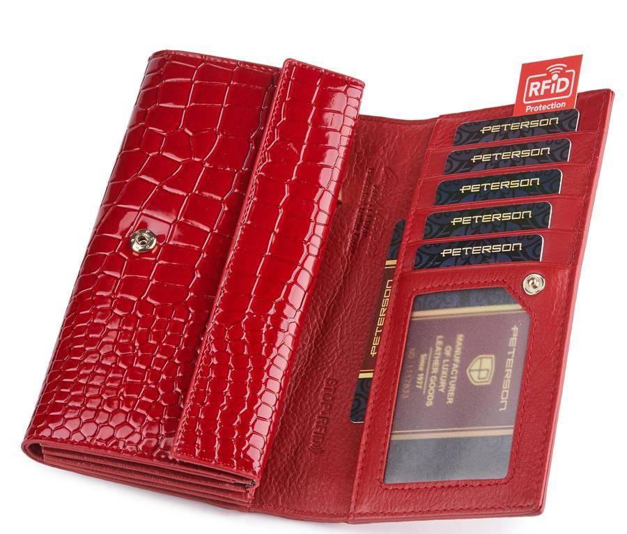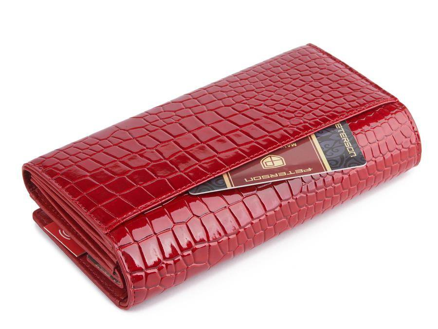 Podłużny portfel damski z motywem skóry krokodyla — Peterson