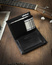 Portfel zapakowany w eleganckie, sztywne, tekturowe pudełko w czarnym kolorze, oznaczone logiem producenta.