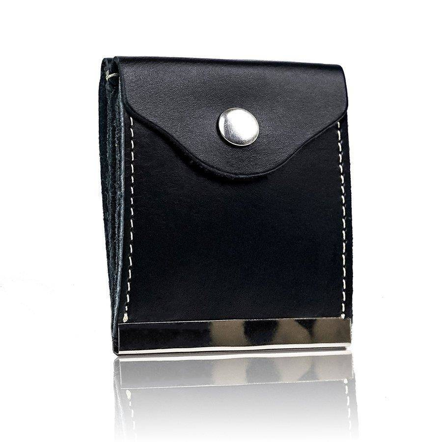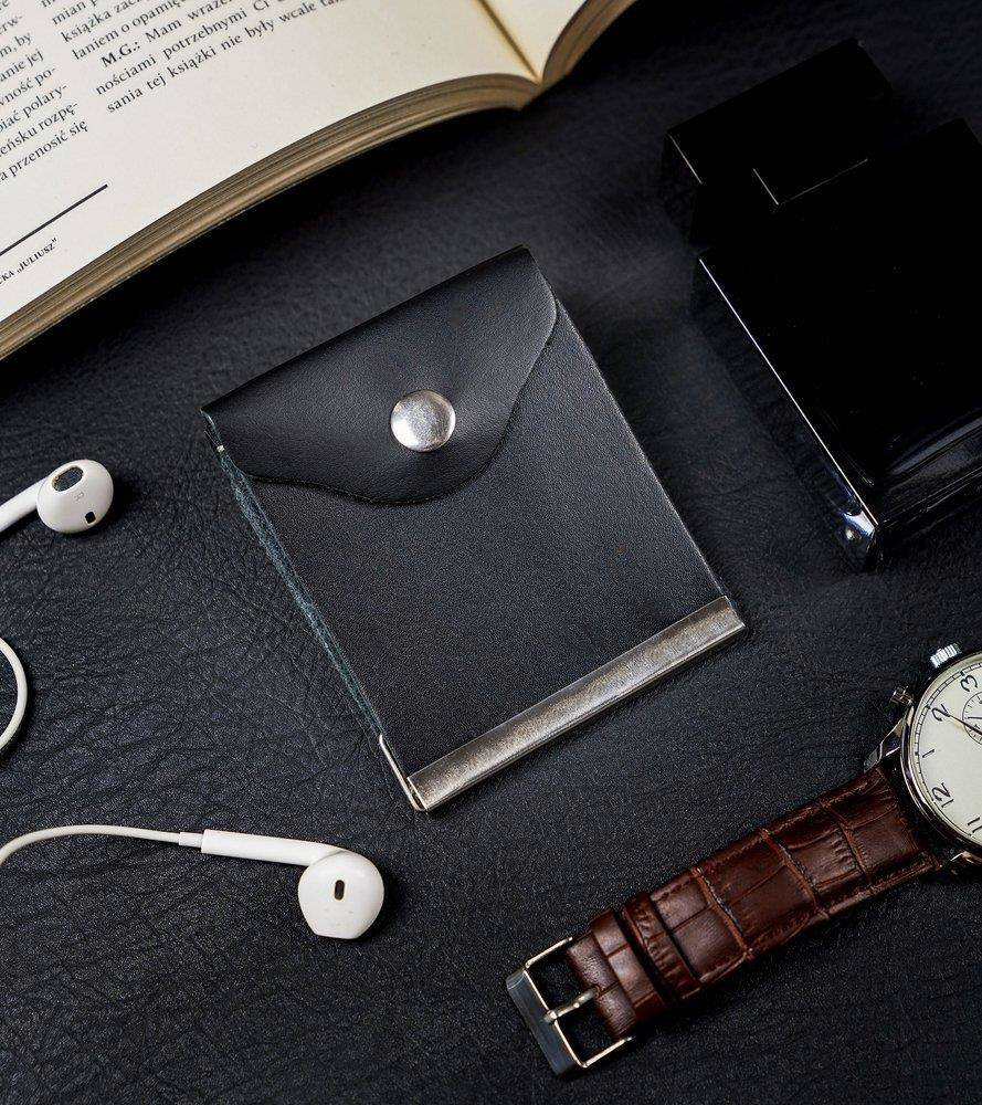 Prostokątna banknotówka ze skóry naturalnej z metalową krawędzią