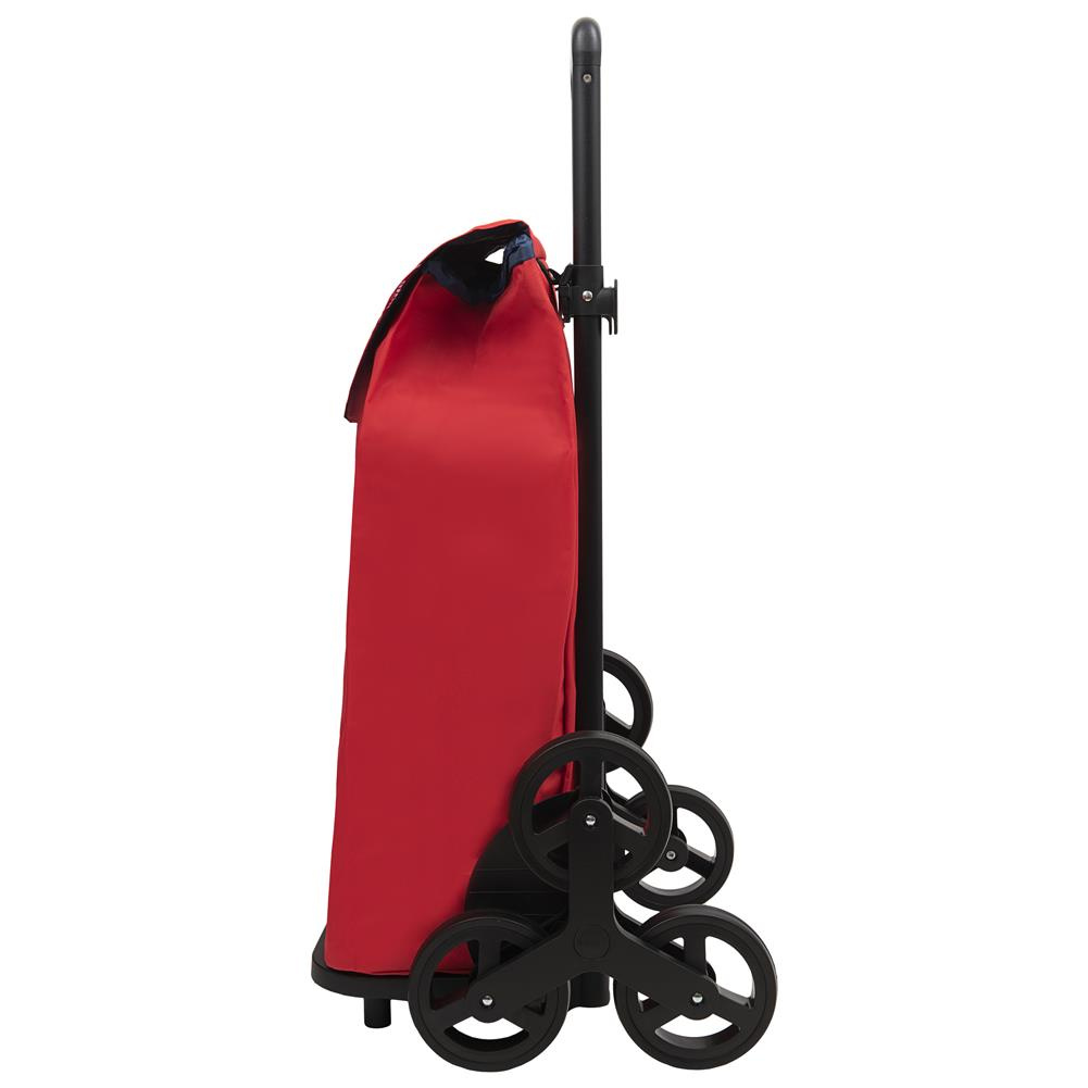 GIMI TRIS NEW RED Kod: GM-168473 Kolor wiodący: czerwony Waga: 3,4 kg Udźwig: 30 kg Pojemność: 52 L Wymiary: 100 x 48 x 54 cm Wymiary po złożeniu: 100 x 48 x 54 cm Średnica kółek: 15 cm Liczba kółek: 6 Materiał stelaża: Stal Materiał torby: Poliester Cechy: - dodatkowa kieszeń - haczyk na wózek sklepowy - zdejmowane kółka