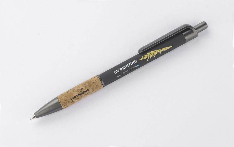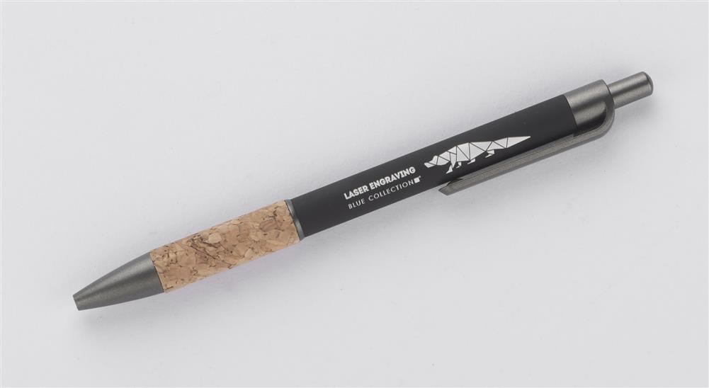 Długopis KUBOD posiada klasyczny, prosty kształt. Wykonany z aluminium pokrytego przyjemną w dotyku gumową powłoką. Uchwyt wykończony naturalnym korkiem gwarantuje wygodne trzymanie. Wykończenia w kolorze grafitowym wykonane zostały z tworzywa. Długopis automatyczny. Wkład typu X20 w kolorze niebieskim.