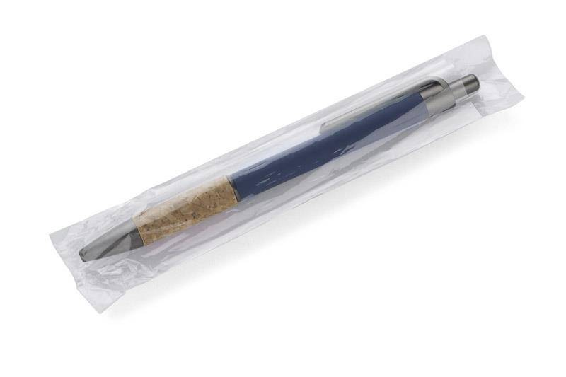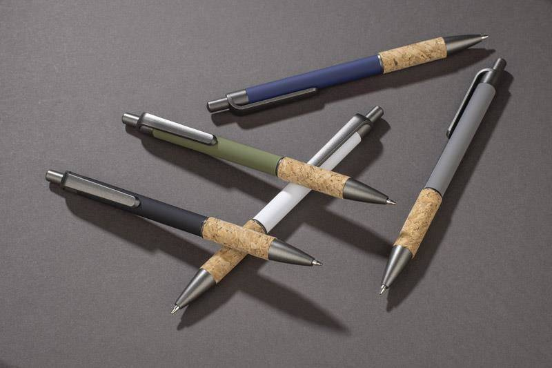 Długopis KUBOD posiada klasyczny, prosty kształt. Wykonany z aluminium pokrytego przyjemną w dotyku gumową powłoką. Uchwyt wykończony naturalnym korkiem gwarantuje wygodne trzymanie. Wykończenia w kolorze grafitowym wykonane zostały z tworzywa. Długopis automatyczny. Wkład typu X20 w kolorze niebieskim.