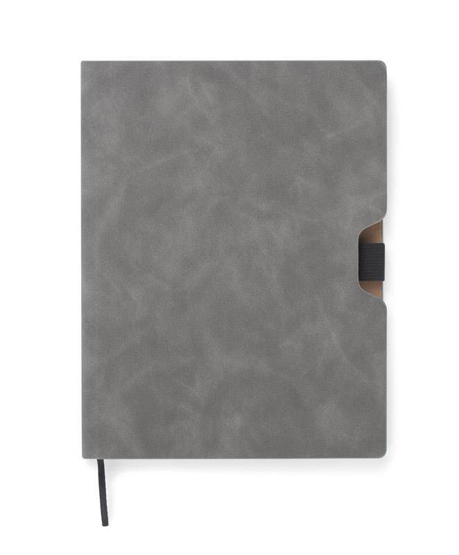BLAKK to klasyczny notes w okładce z ekoskóry w szarym kolorze. Czarne krawędzie kartek nadają mu elegancki wygląd. Notes zawiera 80 białych kartek w linie wykonanych z papieru FSC. Okładka posiada gumkę - uchwyt na długopis oraz czarną zakładkę - wstążeczkę.
