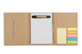 Modny, ekologiczny notes, który chowa w swoim wnętrzu linijkę, karteczki samoprzylepne, miejsce na wizytówki oraz długopis. Logo nadrukujemy na notesie.