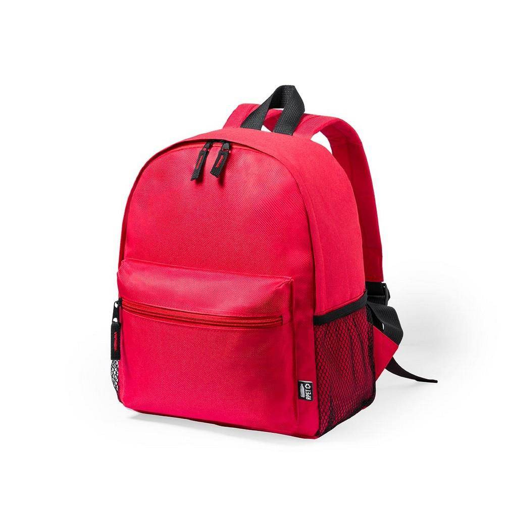 Plecak dziecięcy RPET, przegroda główna i kieszeń przednia na zamek błyskawiczny, kieszonki boczne z siateczki