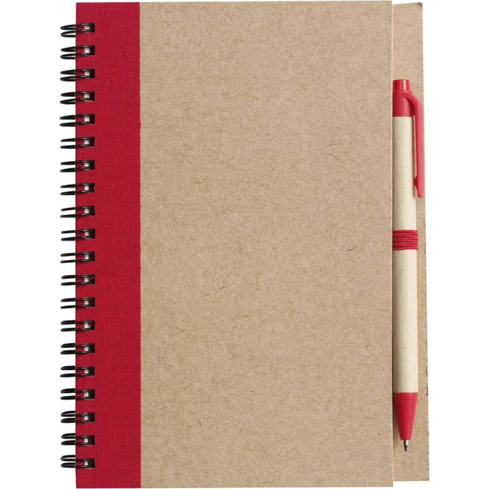 Notatnik (ok. A5, 60 kartek w linie), dołączony biodegradowalny długopis, spiralne bindowanie