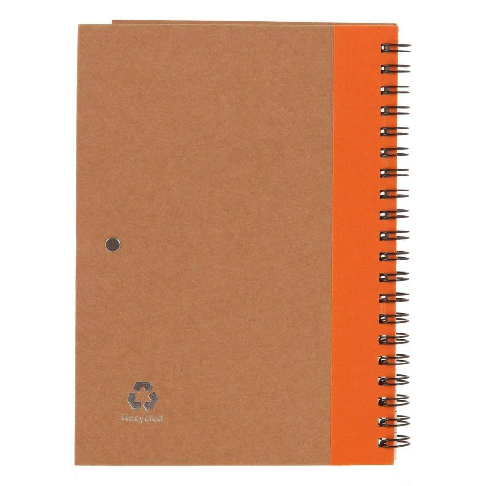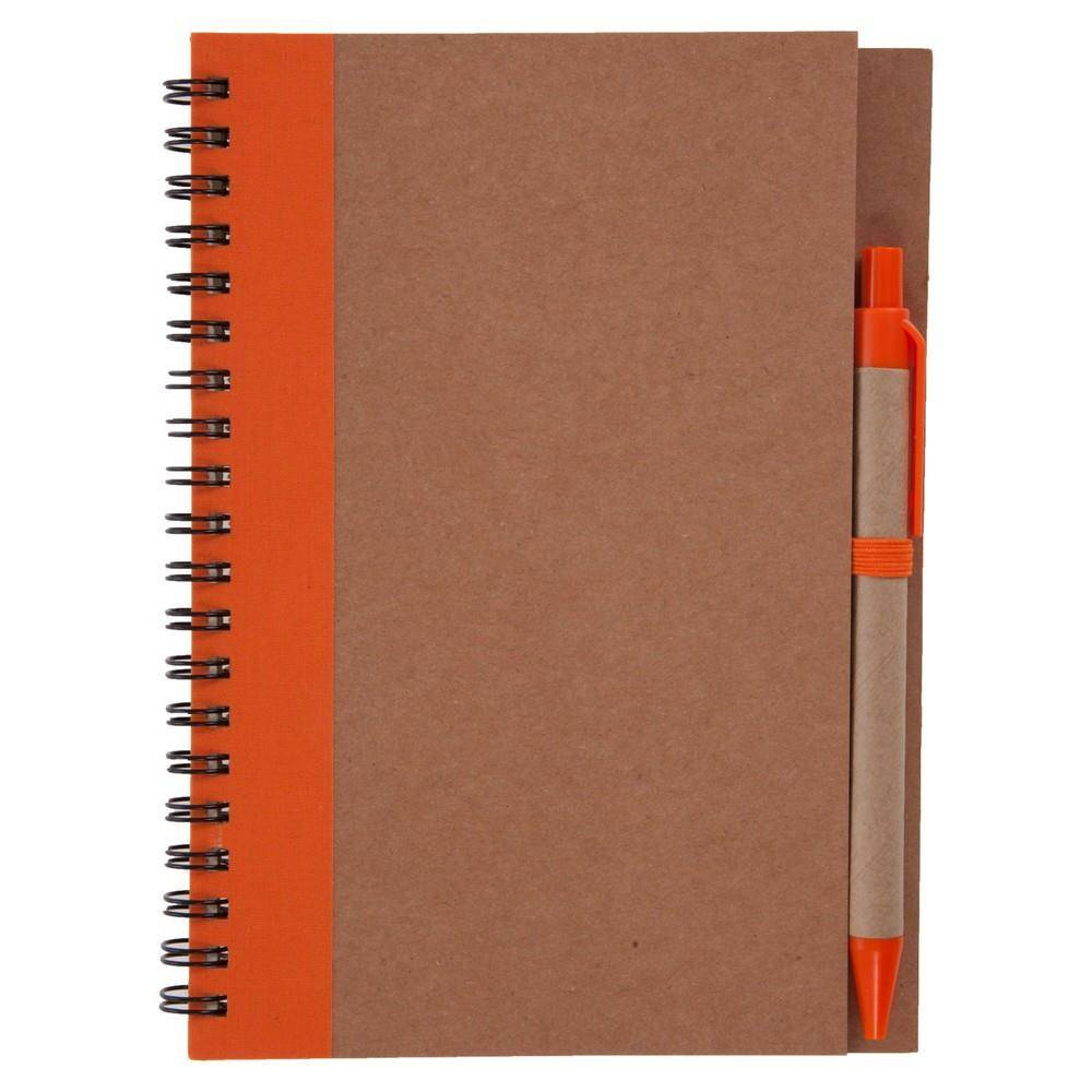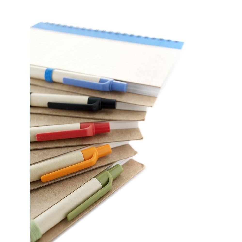 Notatnik (ok. A5, 60 kartek w linie), dołączony biodegradowalny długopis, spiralne bindowanie