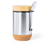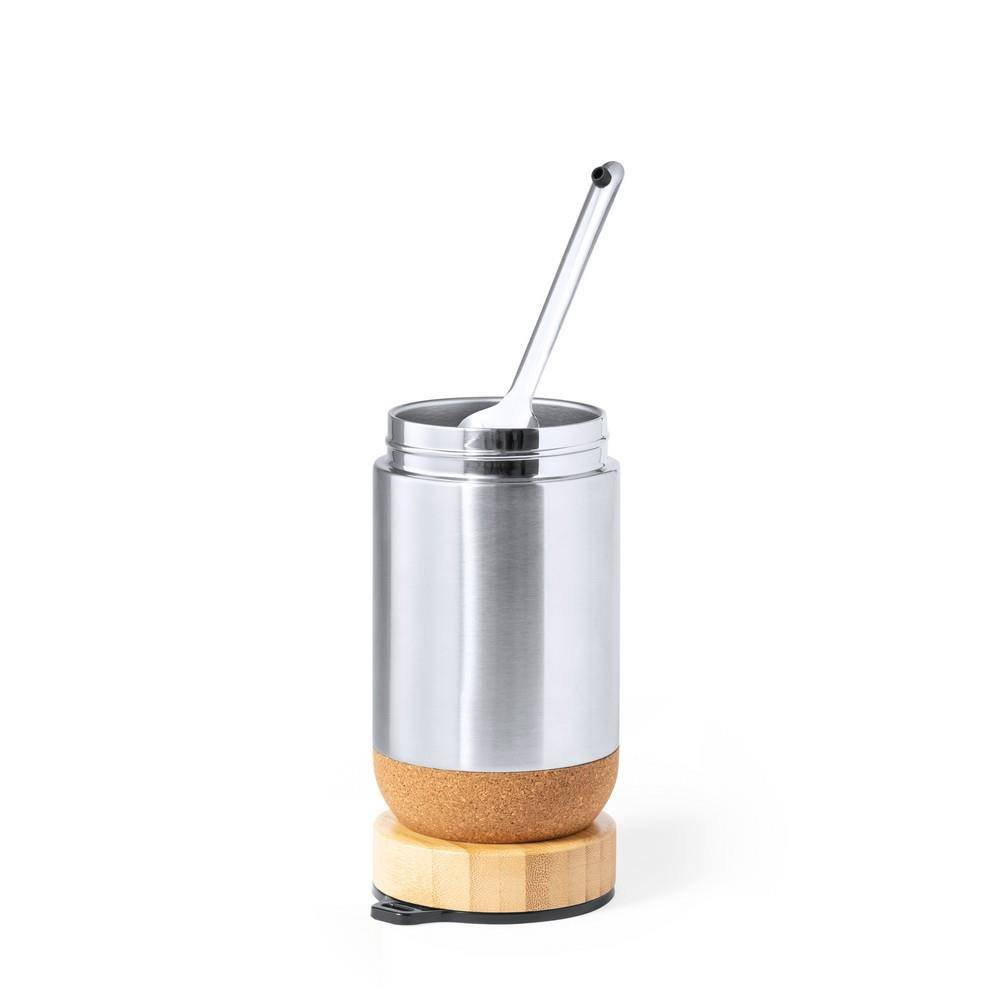 Pojemnik na żywność 450 ml z łyżką ze stali nierdzewnej w komplecie, ścianki ze stali nierdzewnej, bambusowe wieczko i korkowy detal, leakproof