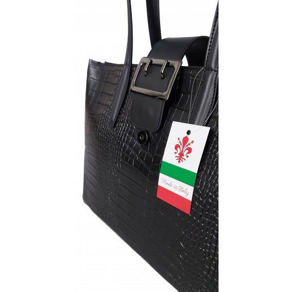 Sztywna, gruba skórka , motyw krokodylka z delikatnym połyskiem.