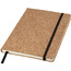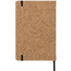 Notes rozmiaru A5 z okładką z korka, zamykany na czarną gumkę ze wstążką.