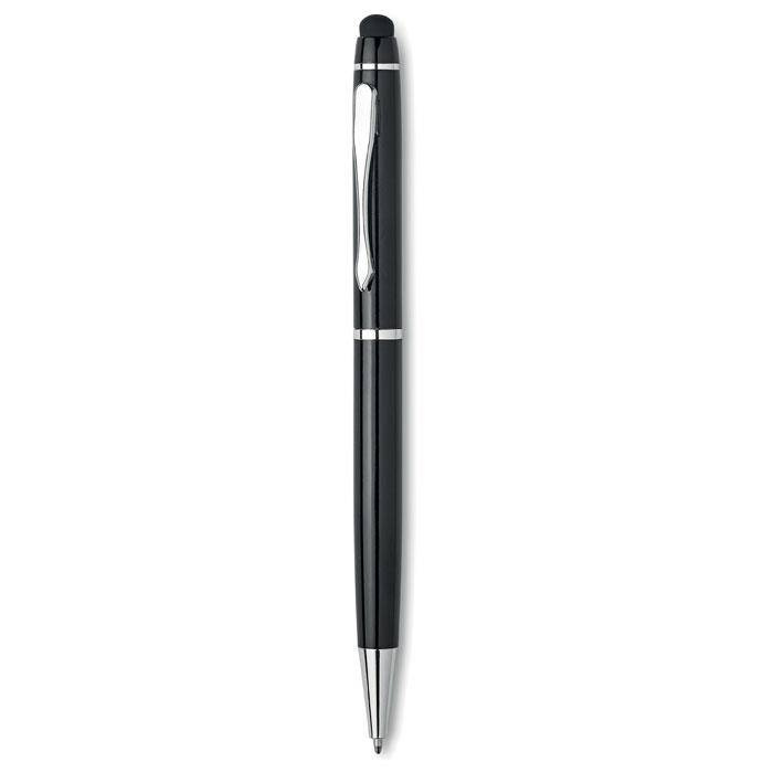 Przekręcany długopis wykonany z aluminium z miękką końcówką do ekranów dotykowych.