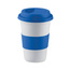 Pojedynczy ceramiczny kubek z silikonową nakładką i panelem do chwytania.