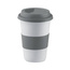 Pojedynczy ceramiczny kubek z silikonową nakładką i panelem do chwytania.