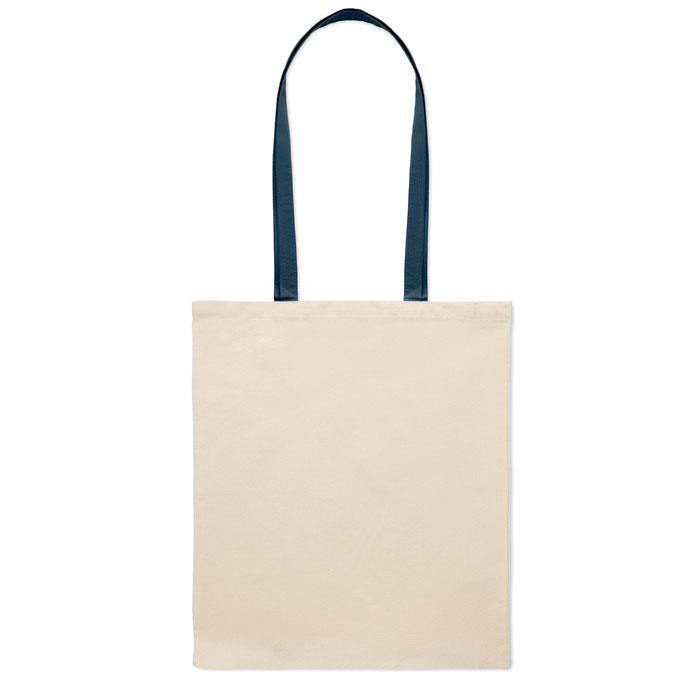 Bawełniana torba na zakupy z kolorowymi długimi uchwytami. 140 gr/m².
