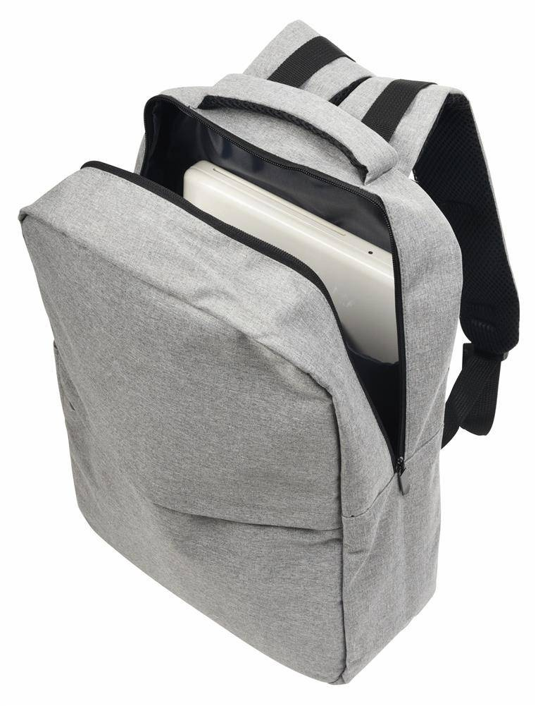 Plecak PRAGUE z przednią kieszenią z zamkiem błyskawicznym, główną kieszenią z zamkiem błyskawicznym i wyściełaną kieszenią wewnętrzną na laptopa lub tablet.