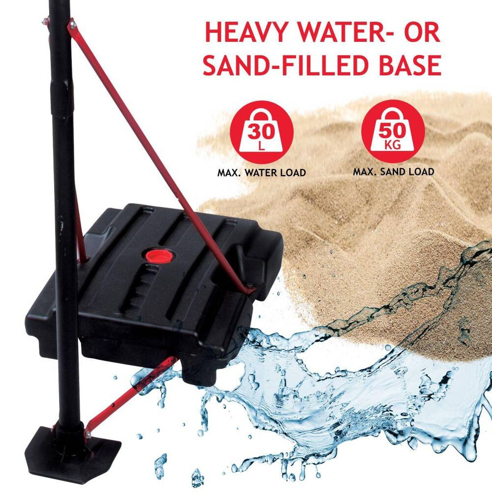 - wzmocniona podstawa, wypełniona piaskiem lub wodą zapewni stabilnie ustawienie na płaskim podłożu