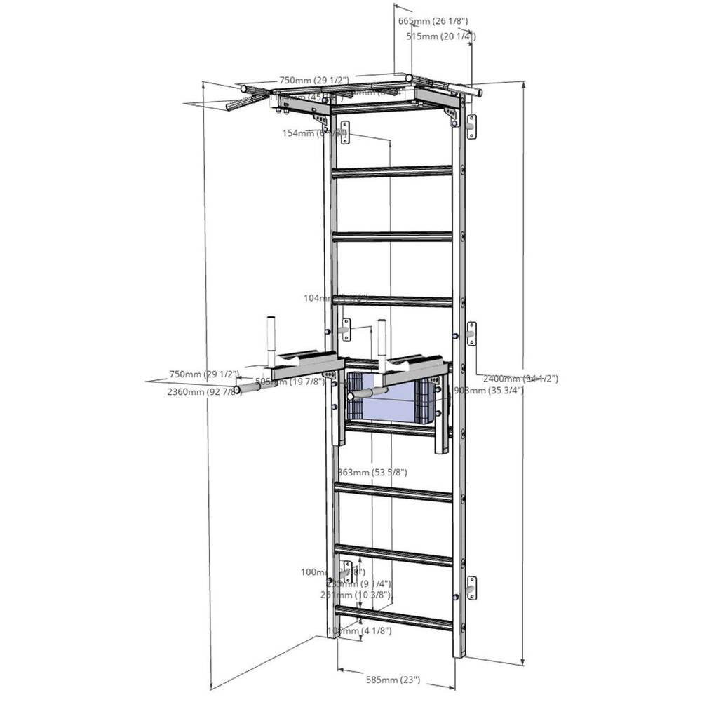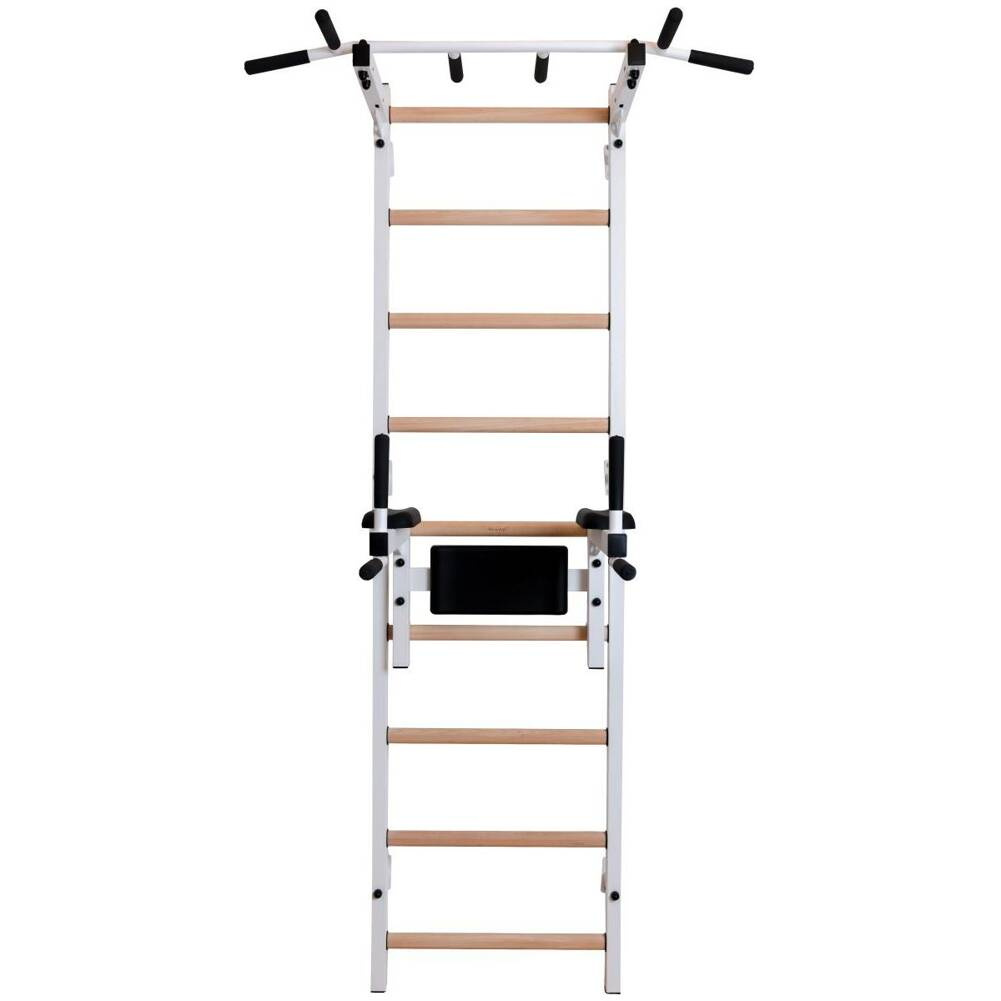 Drewniano – metalowa drabinka gimnastyczna z drążkiem i poręczą do ćwiczeń to solidna i praktyczna konstrukcja. Nie zajmuje dużo miejsca, jest przymocowana do ściany i odstaje na około 15 cm, dzięki czemu znakomicie sprawdzi się w każdym pomieszczeniu. Nowatorskie połączenie drewna z metalem idealnie komponuje się w aktualne trendy nowoczesnego wystroju wnętrza. Drabinka mocowana jest do ściany, z wykorzystaniem sześciu mocnych uchwytów. Profile boczne drabinki gimnastycznej zostały wykonane z metalu 40 x 50 mm o grubości stali – 2 mm. Metal wykorzystany w produkcji jest wysokiej jakości, a proszkowe malowanie zabezpiecza profile drabinki przed odpryskami, zarysowaniami czy zadrapaniami wynikłymi z użytkowania drabinki i kontaktu z osprzętem. Amortyzacja w kształcie litery T uchwytów do ściany skierowana jest na duże obciążenia, nawet do 150 kg osoby ćwiczącej na drabince gimnastycznej. Szczebelki wykonane są z drewna bukowego, są one ręcznie olejowane co zapobiega ślizganiu się dłoni podczas wykonywania ćwiczeń na drabince gimnastycznej. Chroni to także drabinkę przed szybką eksploatacją w postaci śladów, otarć czy zabrudzeń. Najważniejszą zaletą drabinki jest jej wytrzymałość. Drabinka jest w stanie wytrzymać obciążenie sięgające nawet do 150 kilogramów. Jest to szczególnie ważny aspekt dla użytkowników o większej wadze ciała. Drabinkę sportową można wykorzystywać nie tylko w salach gimnastycznych i siłowniach.