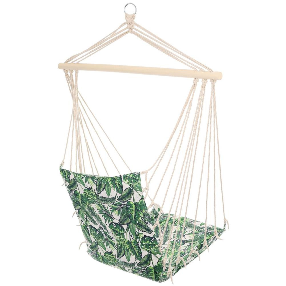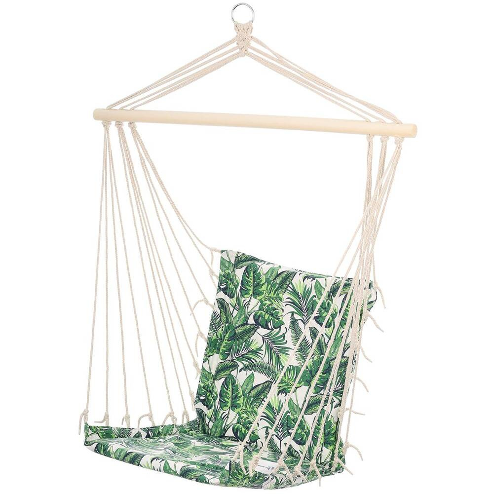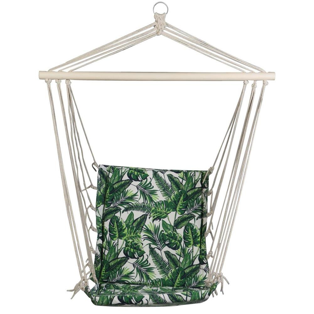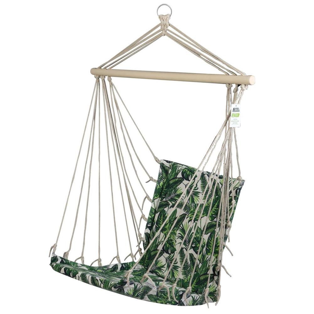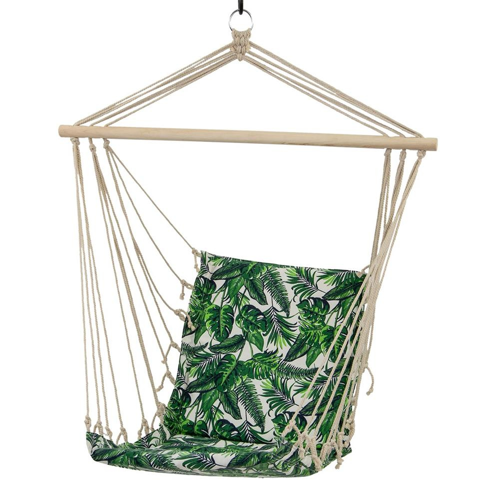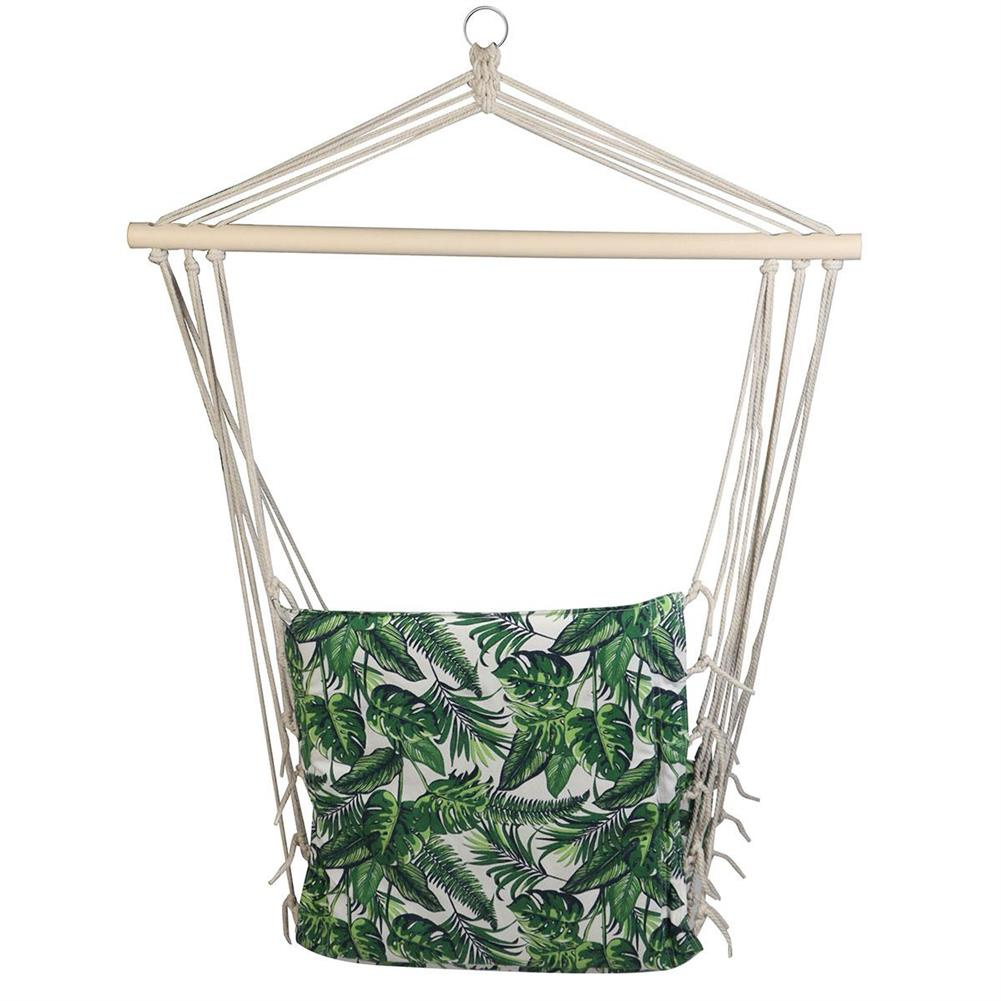 HAMAK FOTEL WISZĄCY BRAZYLIJSKI NATURA JUNGLE LIGHT to doskonały wybór na leniwe, letnie popołudnie w ogrodzie i nie tylko, możesz z niego korzystać również w domu na tarasie lub balkonie. Wystarczy zamontować odpowiedni hak podpiąć hamak i rozpocząć relaks. Wysokiej jakości materiał, wszyte w oparcie i siedzenie poduszki z pianki i solidna konstrukcja, o nośności do 120 kg zapewnią Ci bezpieczeństwo oraz niezwykłą wygodę. Wypoczywaj na całego w naszym wygodnym i stabilnym hamaku fotelu brazylijskim. Zamień kawałek ogrodu lub tarasu w oazę ciszy i spokoju, bo tym hamakiem, relaks na świeżym powietrzu to czysta przyjemność!