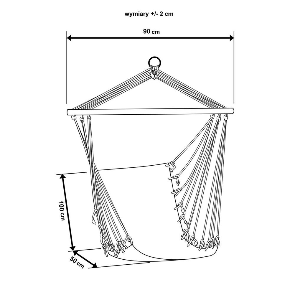 - Wymiary zawieszonego hamaka ok.: długość 120 x 60 cm (dł. x gł.)