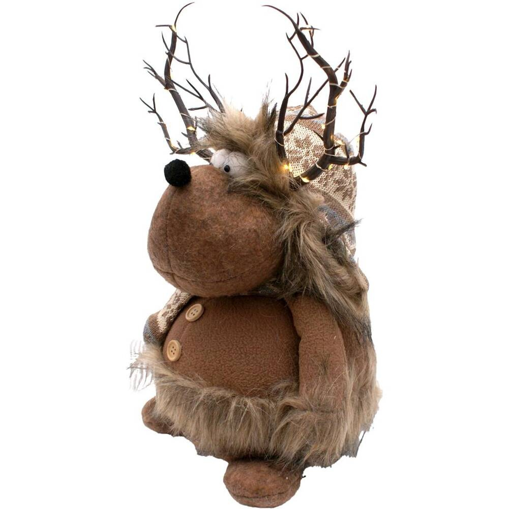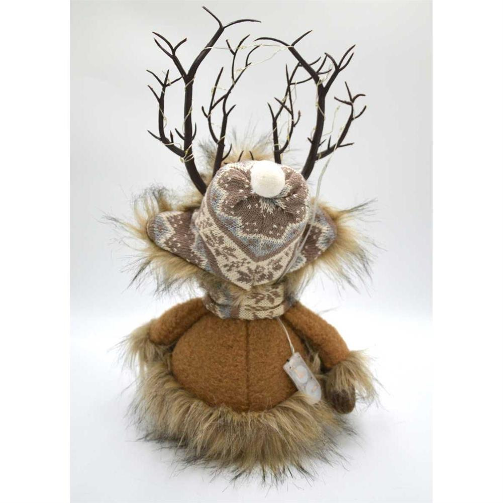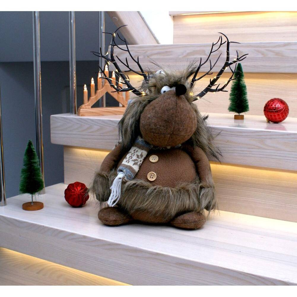 Świąteczny renifer to przyjaciel Świętego Mikołaja, który chętnie zamieszka w Twoim domu. Dzięki stabilnej podstawie umieścisz go na każdej szafce, w salonie przy choince, na kominku na oknie w pokoju dziecięcym, czy w sypialni. Renifer ma śliczną zimową czapeczkę, do kompletu szalik i ciepłe futerkowe obszycie. Dodatkowo po włączeniu lampek LED jego poroże świeci, roztaczając dookoła jasną ciepła barwę. Na pewno, dzięki niemu poczujesz nie tylko magię świąt, ale też zimową atmosferę. Renifery najlepiej czują się w gronie innych przyjaciół np.: skrzatów czy gnomów z linii Saska Christmas.