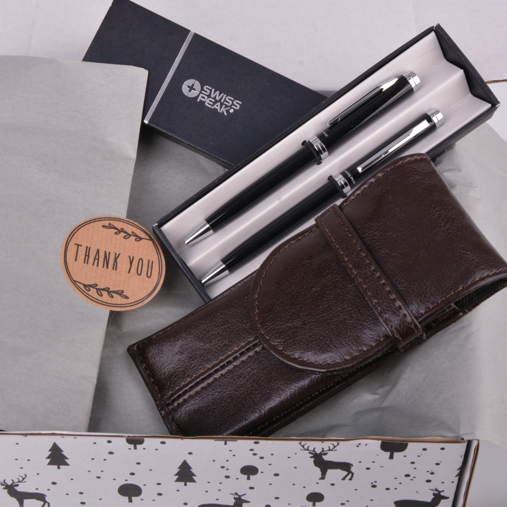 Zestaw prezentowy składa się z zestawu piśmienniczego oraz piórnika.