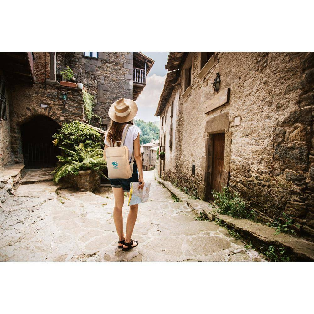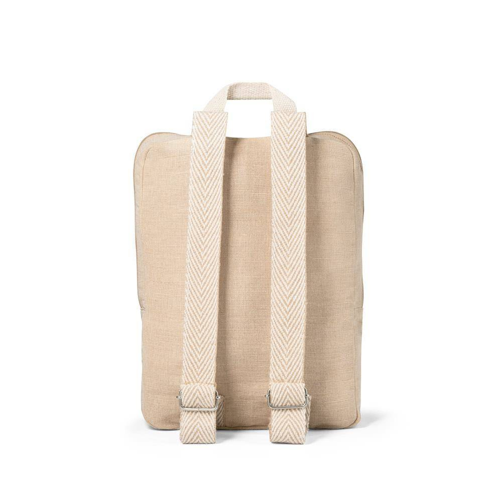 Plecak wykonany z mieszanki juty oraz bawełny (275 g/m) z główną przegrodą oraz przednią kieszenią na suwak. Uchwyt z taśmy bawełnianej mocowane na górze i regulowane paski z dwukolorowej bawełny.270 x 350 x 70 mm