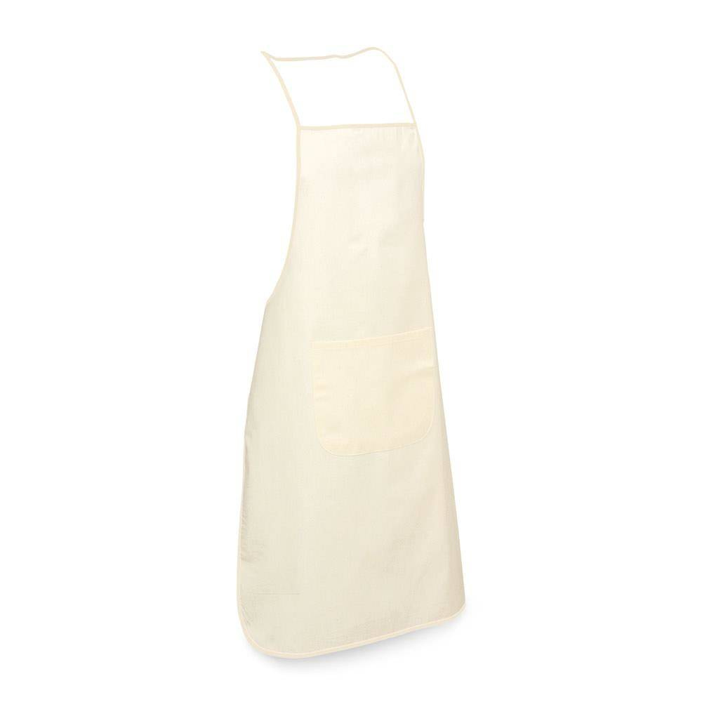Fartuch, 100% bawełna, miękka tkanina, kolor naturalnego włókna z kolorowymi detalami.