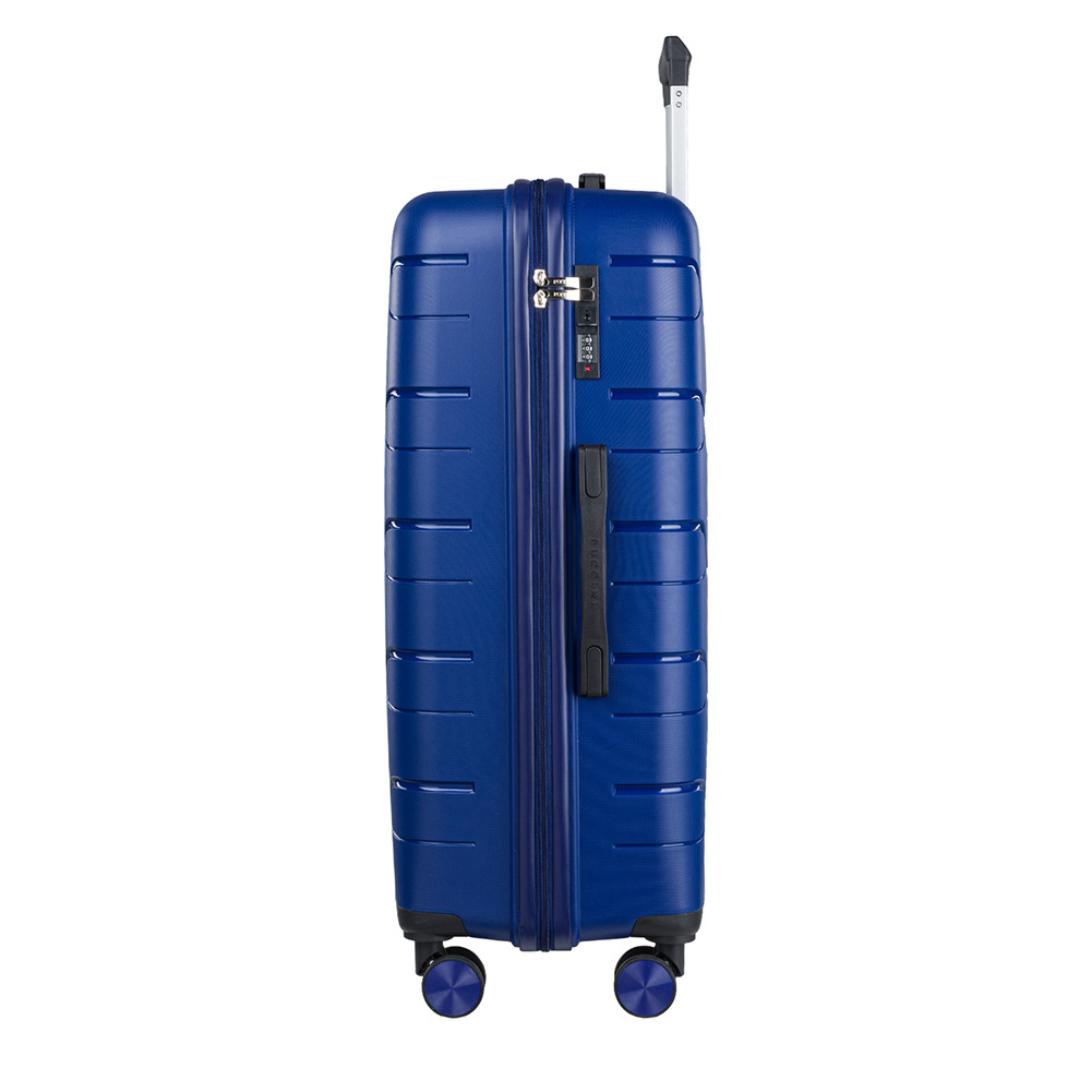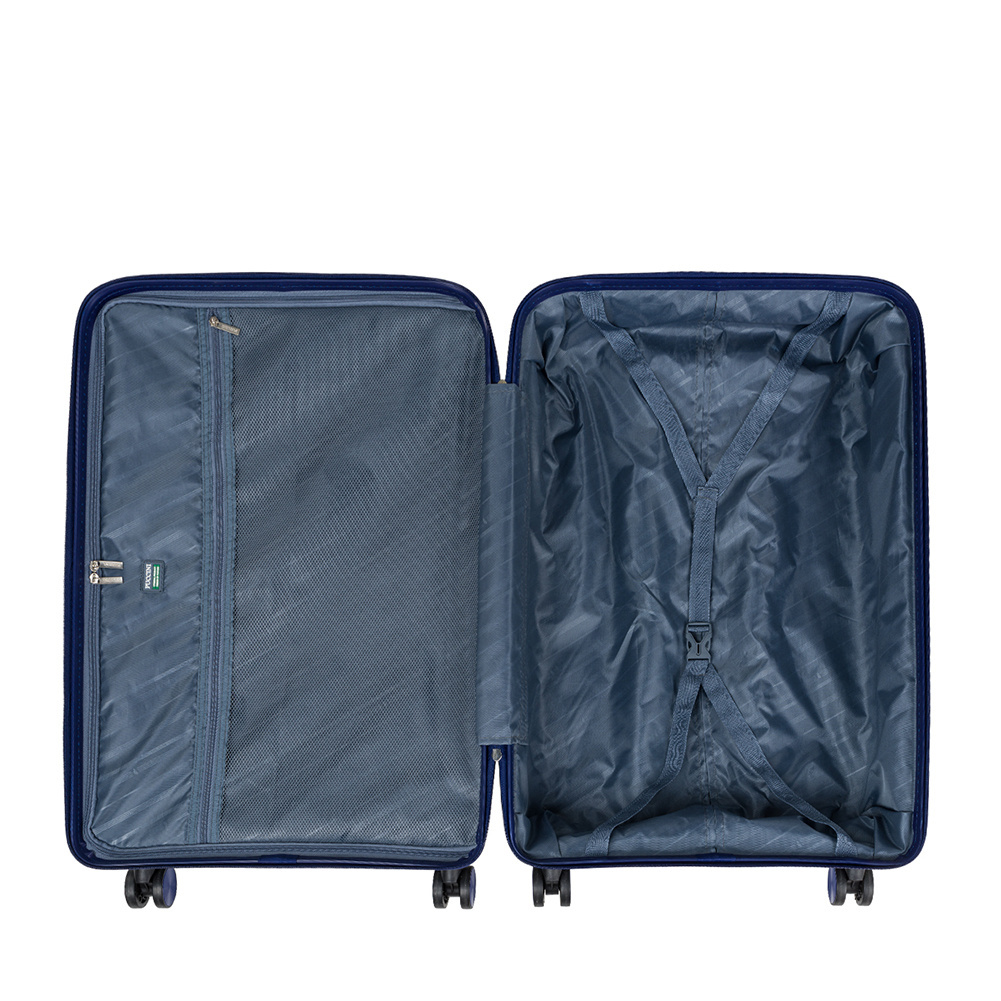 - walizka twarda wykonana z polipropylenu, materiału charakteryzującego się super lekką wagą i niezwykłą wytrzymałością