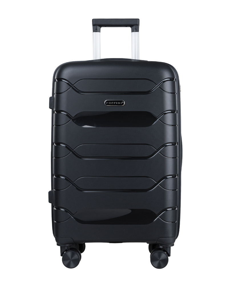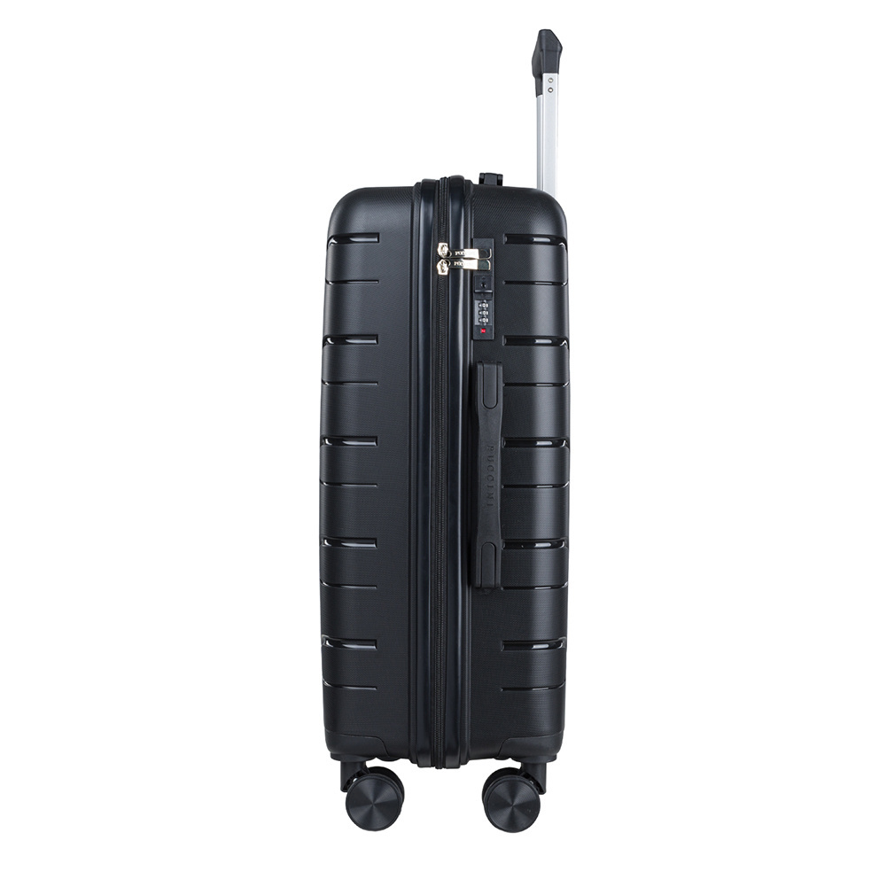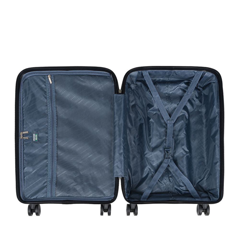 - walizka twarda wykonana z polipropylenu, materiału charakteryzującego się super lekką wagą i niezwykłą wytrzymałością