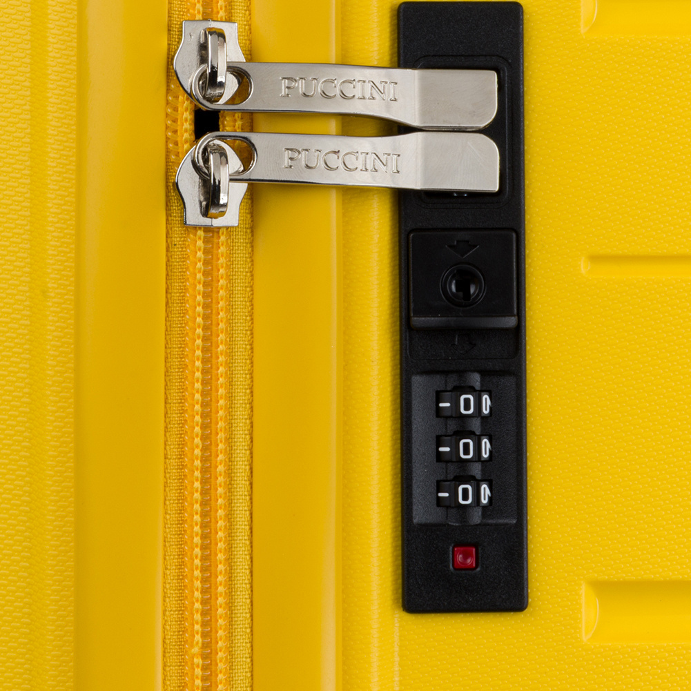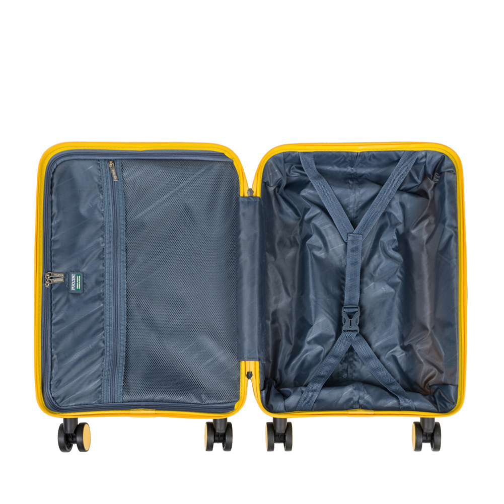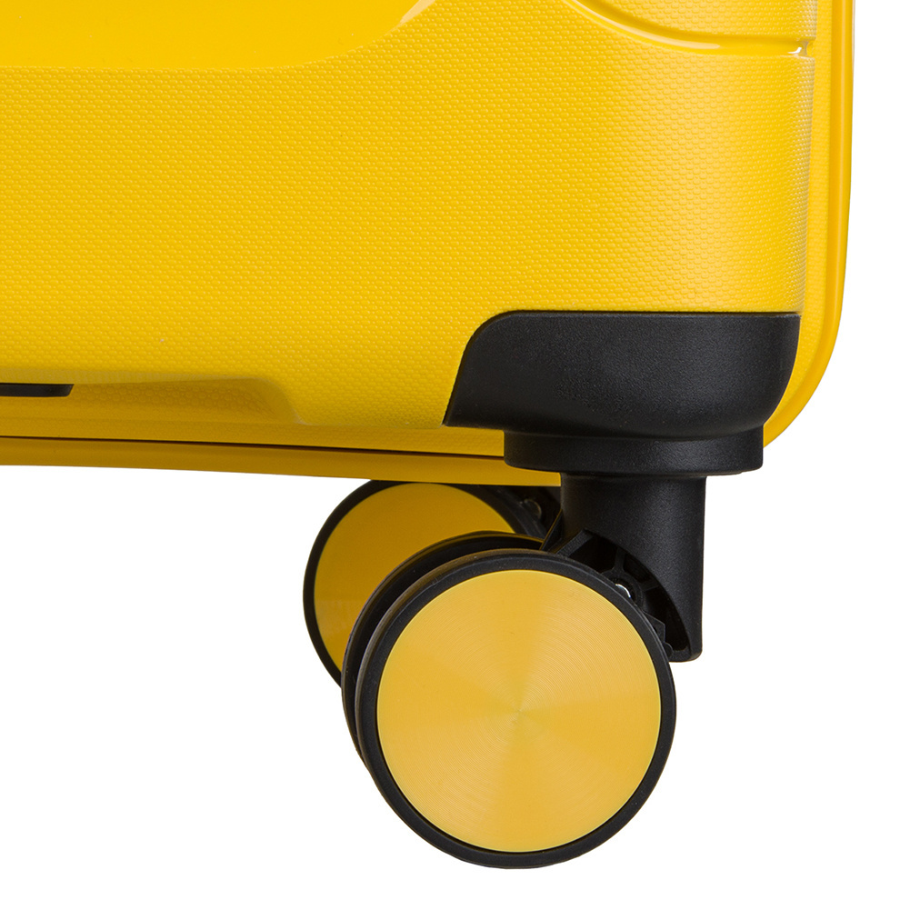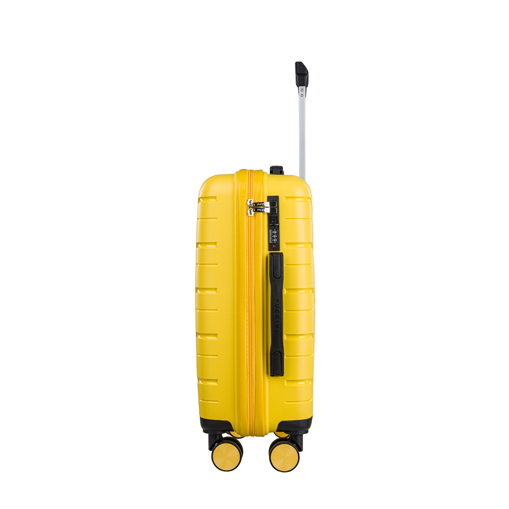 - walizka twarda wykonana z polipropylenu, materiału charakteryzującego się super lekką wagą i niezwykłą wytrzymałością