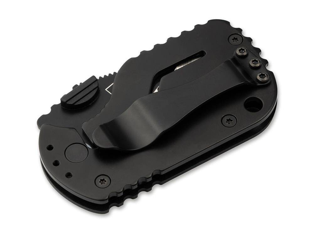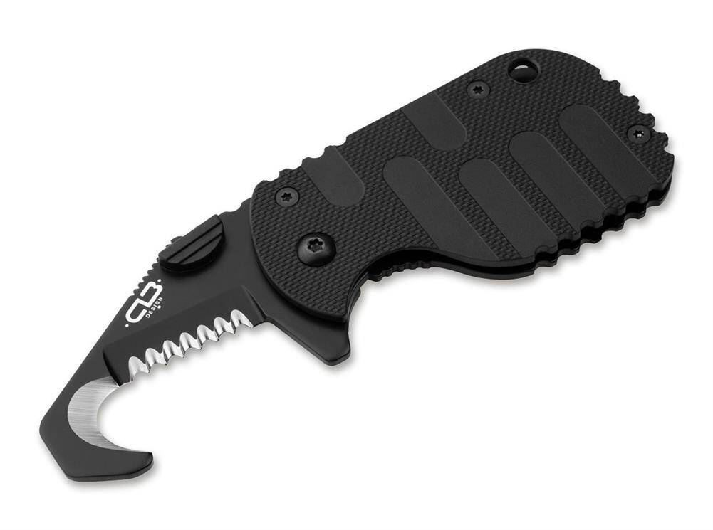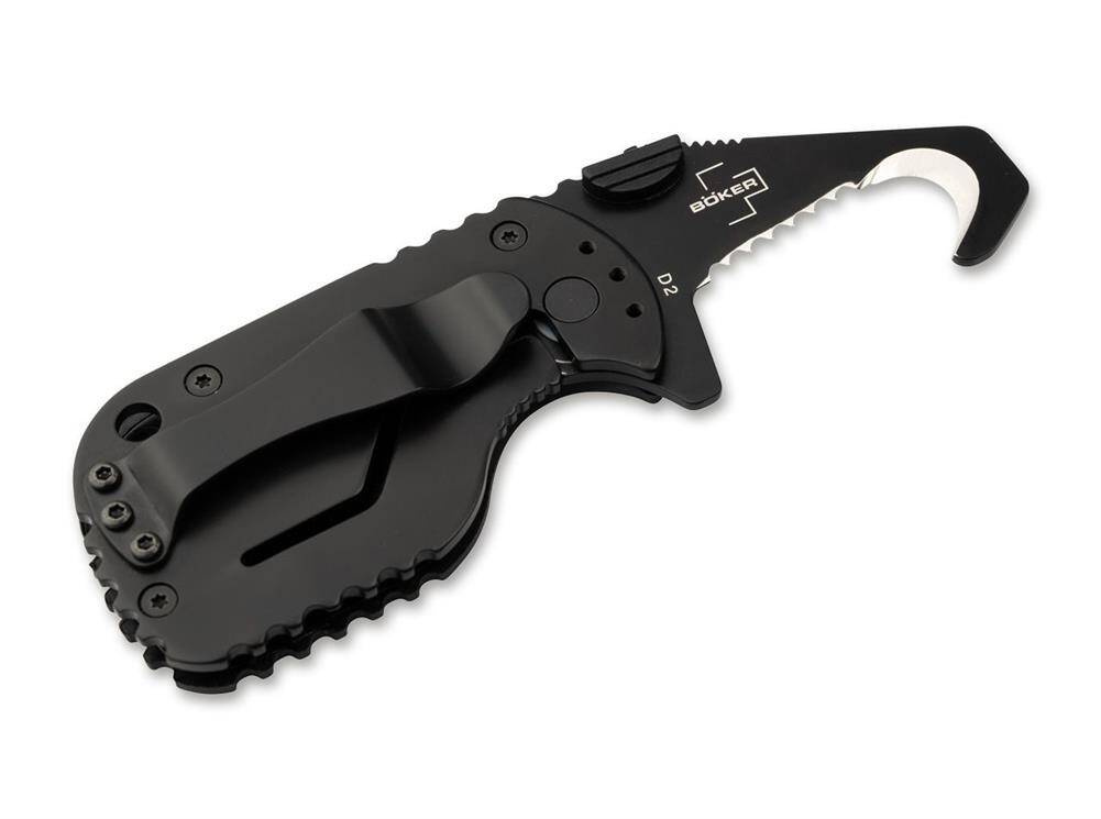 Ultrakompaktowy Boker Plus Rescom jest oparty na popularnym Boker Plus Subcom autorstwa Chad Los Banos, ale w przeciwieństwie do oryginalnego modelu jest dostarczany z wszechstronnym wielofunkcyjnym ostrzem. Niesłabnąca popularność tego poręcznego narzędzia ratunkowego wśród profesjonalnych służb ratowniczych i ratowników skłoniła nas do ponownego wydania tego użytecznego klasyka z naszej oferty w unowocześnionej wersji. Boker Plus Rescom 2.0 jest dostarczany z powlekanym na czarno ostrzem ratunkowym D2, które łączy w sobie wiele praktycznych funkcji i może uratować życie w nagłych wypadkach. Jest otwierany po obu stronach za pomocą kołków na kciuk i bezpiecznie blokowany za pomocą dwumilimetrowej stalowej płyty zamka ramy. Wyraźna osłona dłoni zwiększa komfort chwytu i zapobiega ześlizgiwaniu się do ostrza. Teksturowana rękojeść wykonana jest z czarnego Zytelu z trójwymiarowym frezowaniem, a dzięki tej strukturze powierzchni, ergonomicznemu kształtowi i wyżłobieniom w obszarze oparcia kciuka zawsze bezpiecznie leży w dłoni, nawet gdy jest mokra. Z otworem na smycz i wymiennym klipsem (przechylanie/przechylanie).