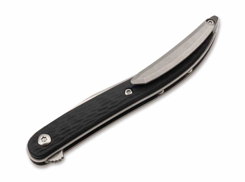 Niekończąca się otwarta przestrzeń prerii, bydło longhorn i głośne „Yee-Haw”. Pomimo swojej bogatej historii, amerykański stan Teksas jest dziś uwielbioną idyllą Zachodu. W XIX wieku nóż Texas Tooth Pick był szeroko rozpowszechniony, zwłaszcza wśród rolników i odważnych żołnierzy fortuny. Jako dalszy rozwój noży Navaja sprowadzonych przez hiszpańskich osadników, wariant Texas ma uderzająco długą klingę i ogólnie smukłą konstrukcję. Te cechy predestynowały wykałaczkę Texas do różnych zadań. Od celów rolniczych, takich jak pobieranie próbek w celu określenia jakości owoców i warzyw, przez filetowanie ryb, po napędzane adrenaliną pojedynki śmiałków, dżentelmeński nóż obejmował szerokie spektrum. Boker Plus reinterpretuje popularną konstrukcję i zapewnia wykałaczce Texas z typową innowacyjną wydajnością. Flipper otwiera ostrze VG-10 z łożyskiem kulkowym z jedwabiście gładkim wykończeniem Hairline i przyspiesza codzienną pracę. W przeciwieństwie do swojego historycznego modelu, nóż Gentleman jest niezawodnie blokowany liner lockiem, co znacznie zwiększa jego przydatność do codziennego użytku. Zakrzywione czarne łuski uchwytów są wykonane z teksturowanego G10 i zapewniają idealną pozycję dłoni oraz nowoczesny wygląd. Frezowany klips tip-up (r) ma wykończenie stonewash. Pochodzi z odrobiną Dzikiego Zachodu.