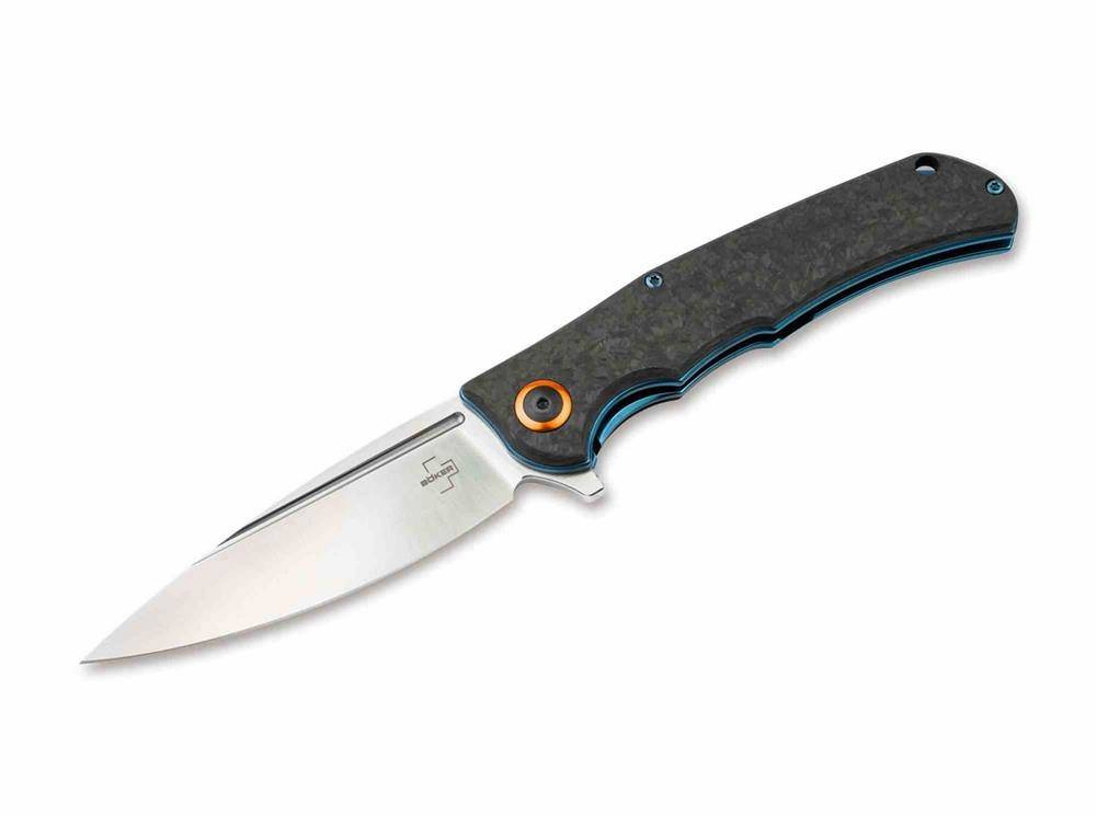 Ponure perspektywy dla wszystkich niesfornych codziennych zadań związanych z krojeniem: w pełni rozwinięty Boker Plus Nubilum szerzy stylową elegancję w świecie EDC i czeka na swoje pierwsze zastosowanie. Wyposażony w imponujące ostrze droppoint wykonane z D2, scyzoryk pewnie przecina karton, linę lub mniejsze gałęzie. Flipper i linerlock sprawiają, że Nubilum jest łatwe w użyciu i podkreśla zwykłą wydajność Boker Plus. Rękojeść wykonana z marmuru węglowego ma ergonomiczny kształt i doskonale leży w dłoni nawet w najbardziej niesprzyjających warunkach. Jasne i jednocześnie niewyraźne: ciemnoszare łuski rękojeści przeplatają się z delikatnymi odcieniami i są ozdobnie oddzielone niebieskimi anodowanymi wkładkami i śrubami oraz pomarańczowym pierścieniem na śrubie osi ostrza. Klips umożliwia przenoszenie w górę (r), a otwór na smycz zapewnia dodatkową opcję mocowania.