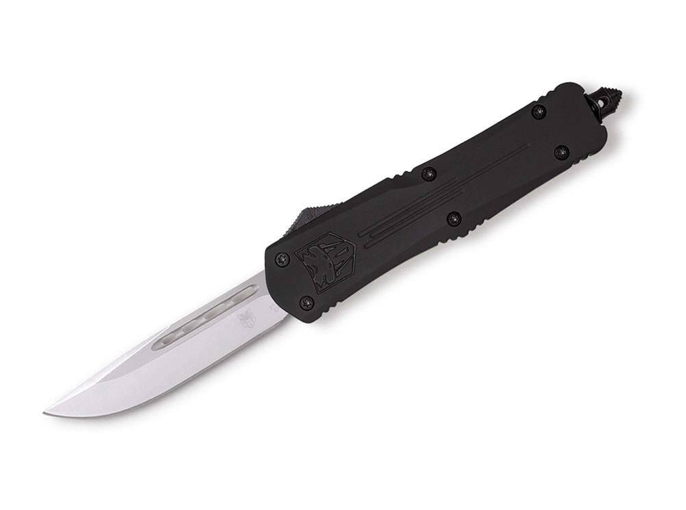 Dorosła wersja popularnego FS-3 przekonuje solidnym ostrzem typu drop point D2, które po naciśnięciu przycisku wysuwa się z przedniej rękojeści tak szybko jak strzała i znika tam ponownie po