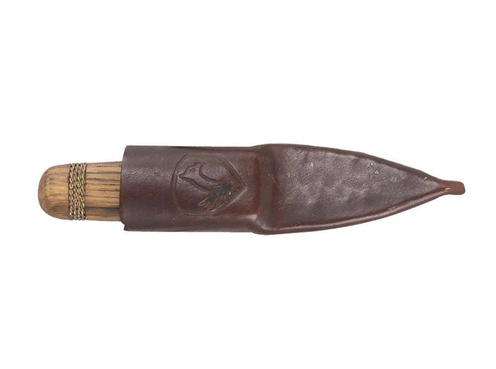 Ręcznie wykonana skórzana pochwa jest idealnym uzupełnieniem tego archaicznego i wyjątkowego narzędzia do cięcia.