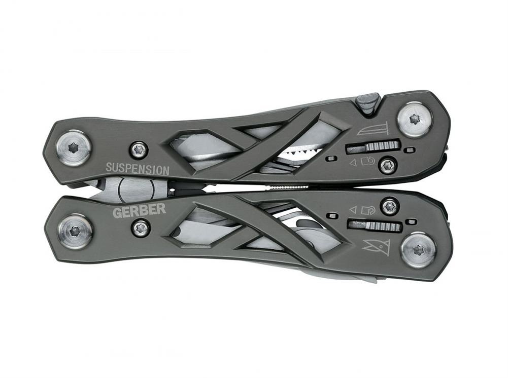 Sprawdzony w praktyce klasyk, który nigdy nie zawodzi. Suspension to wzorcowe narzędzie wygody i trwałości. Łatwo dostępna konstrukcja motylkowa zawiera sprężynowe szczypce i lekką rękojeść z powłoką z azotku tytanu na długie dni i zmęczone ręce. Dzięki 12 narzędziom jest zawsze gotowy do pracy.