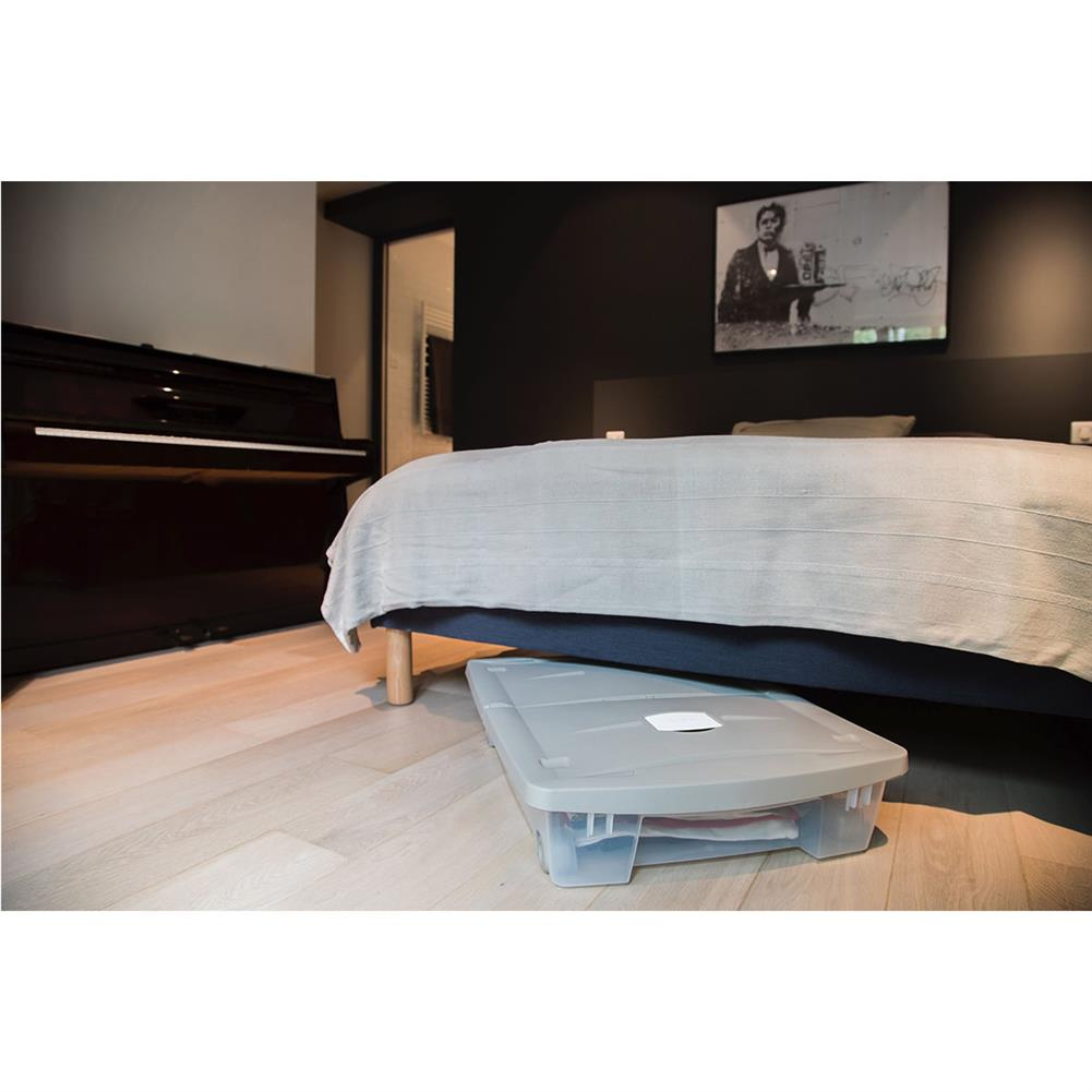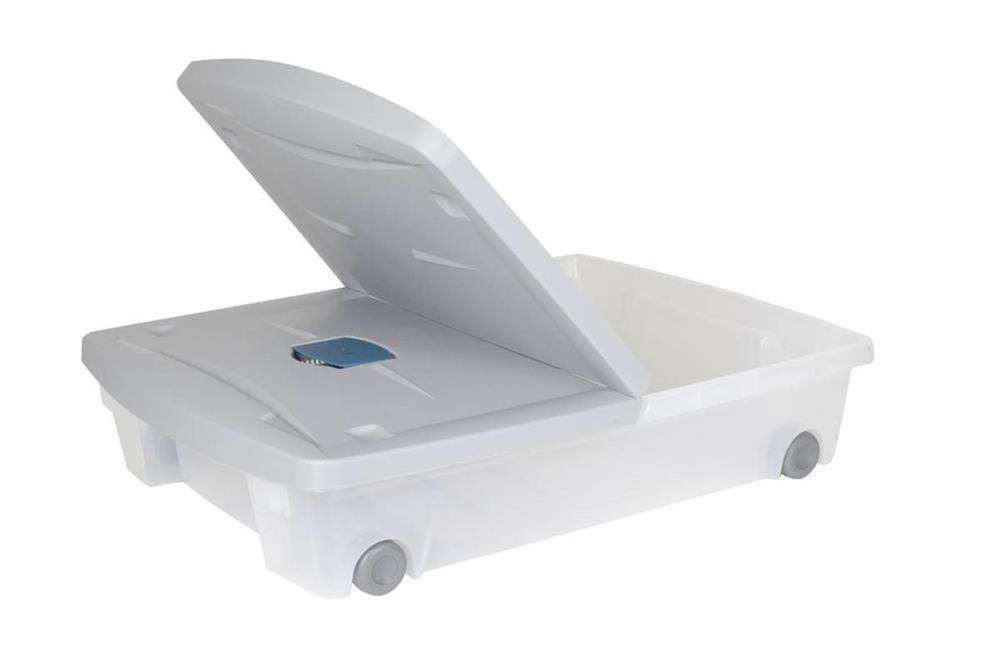 Pojemnik plastikowy pod łóżko 50L z kółkami i pokrywą JASNO-SZARY