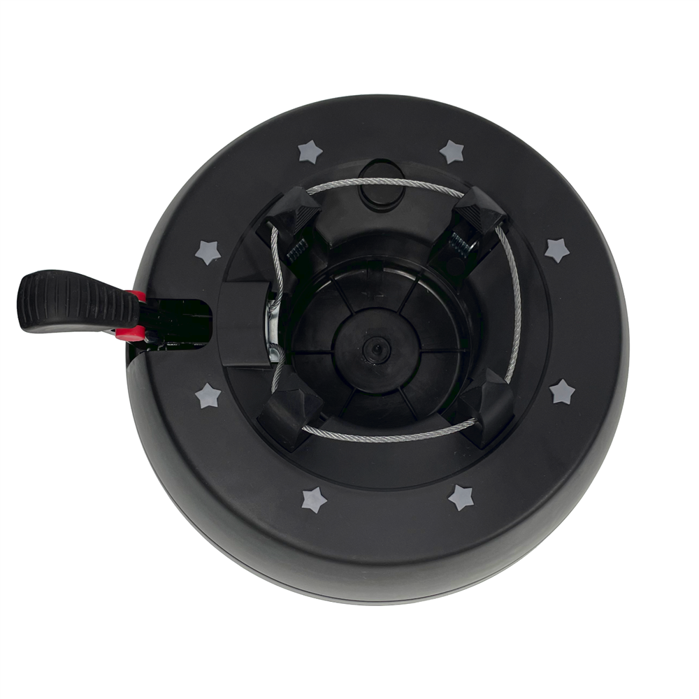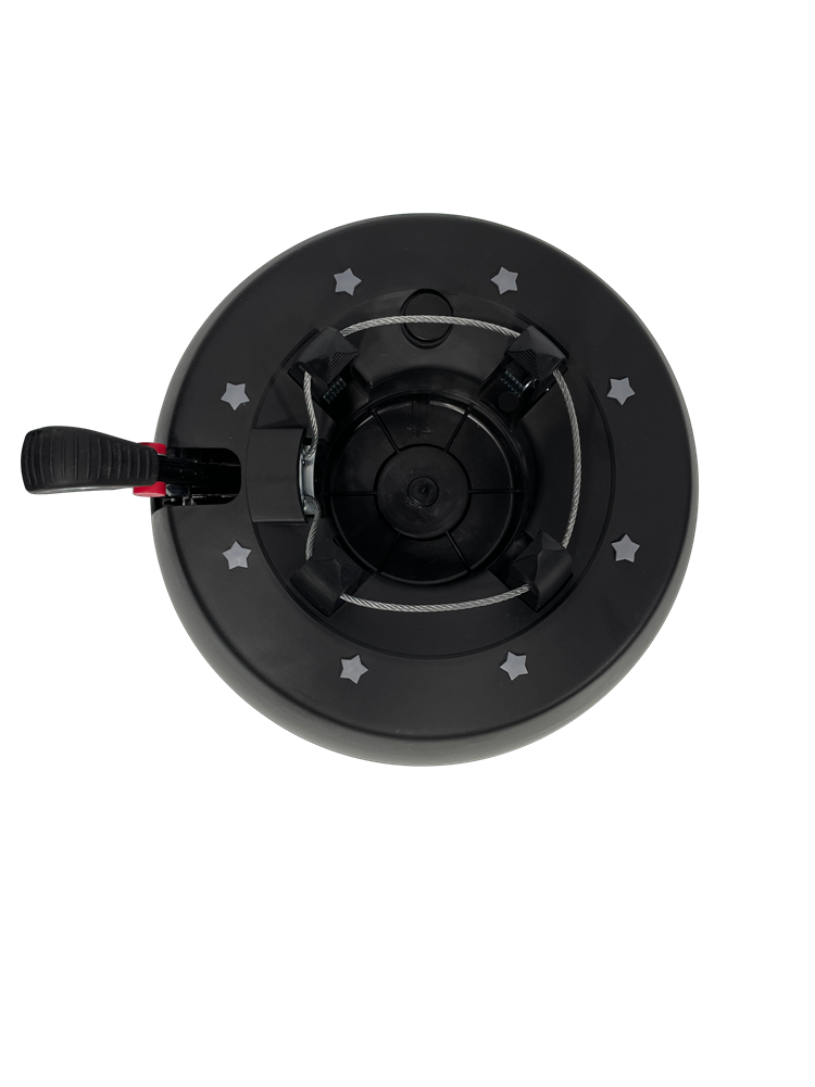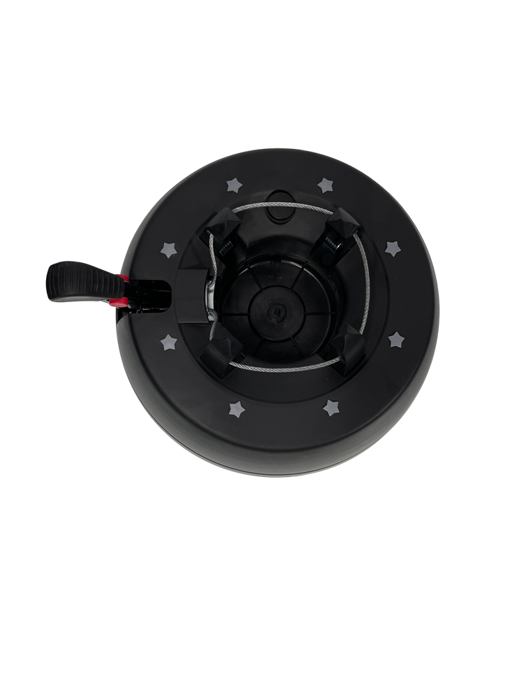 - opatentowany mechanizm 4 haków, które zaciskają się na pniu i unieruchamiają choinkę