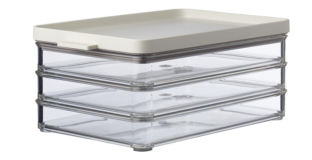 Pojemnik składa się z 3 części a trzy poziomy pozwalają zaoszczędzić i zagospodarować miejsce w lodówce.
