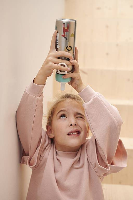 Butelka świetnie sprawdzi się zarówno w zerówce czy w szkole, jak i w domu, na podwórku albo podczas podróży.