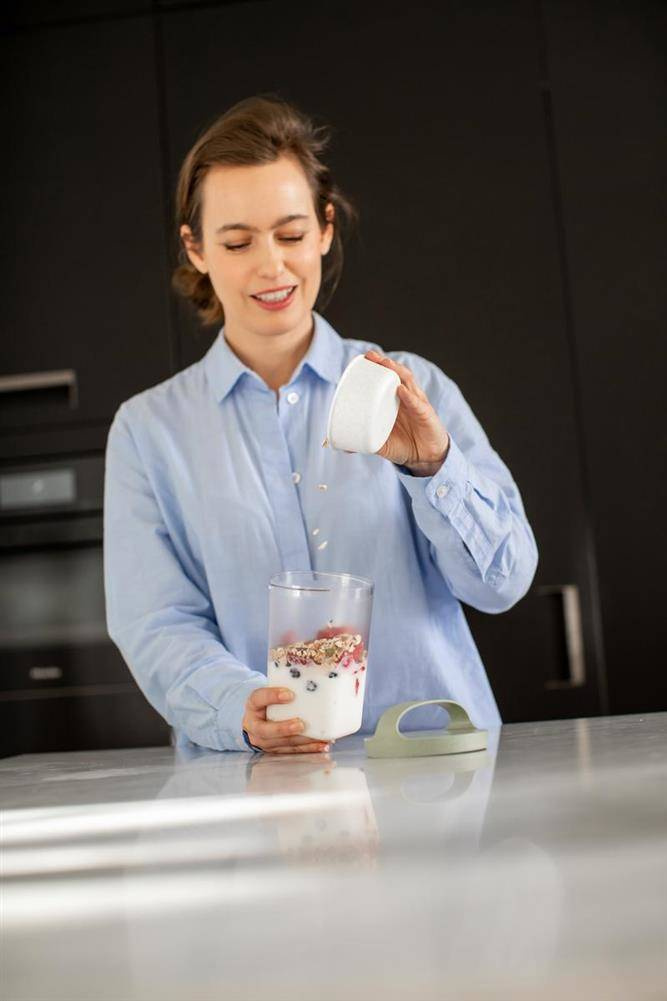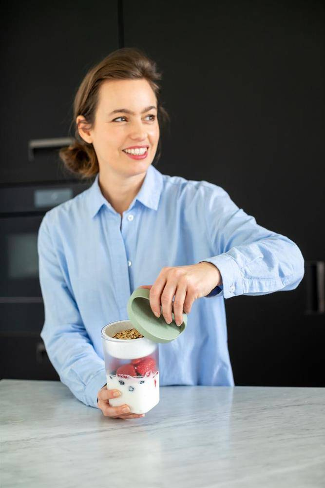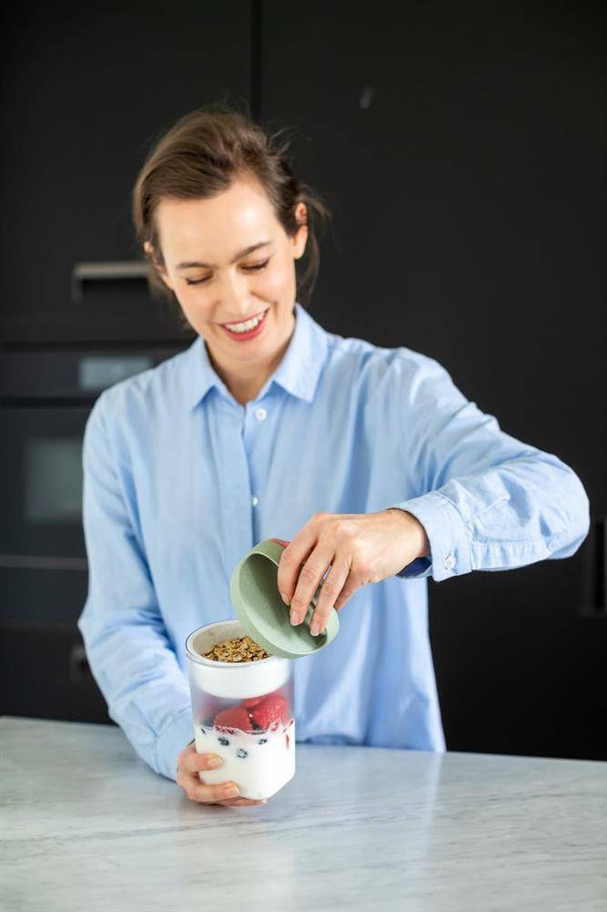 <p><strong>Snackpot Buddy Organic</strong> doskonale sprawdzi się na przekąski czy na małą porcję owsianki lub jogurtu. Odseparowana mniejsza górna przegródka pozwala na zabranie osobno np. humusu do słupków warzywnych, past kanapkowych czy syropu klonowego. Praktyczna rączka umieszczona na górze ułatwia przenoszenie. Pojemnik wykonano go z ekologicznego tworzywa wykonanego z dodatkiem celulozy. Można go myć w zmywarce. Produkt w 100% nadaje się do recyklingu. Nie zawiera melaminy, BPA, formaldehydu ani metali ciężkich.</p>