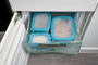 Prostokątne miski dopasowują się do ścianek szafy, lodówki i zamrażarki.