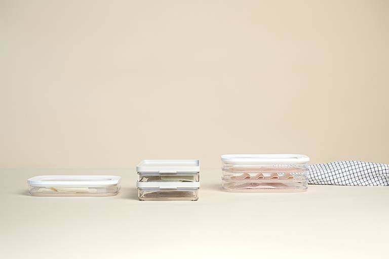 • Przezroczysta pokrywa pozwala kontrolować zawartość bez konieczności otwierania pojemnika.